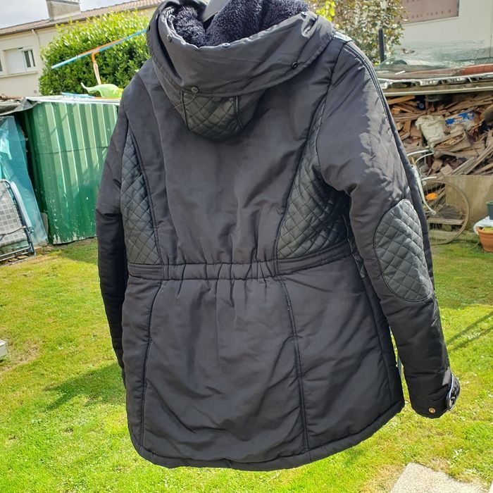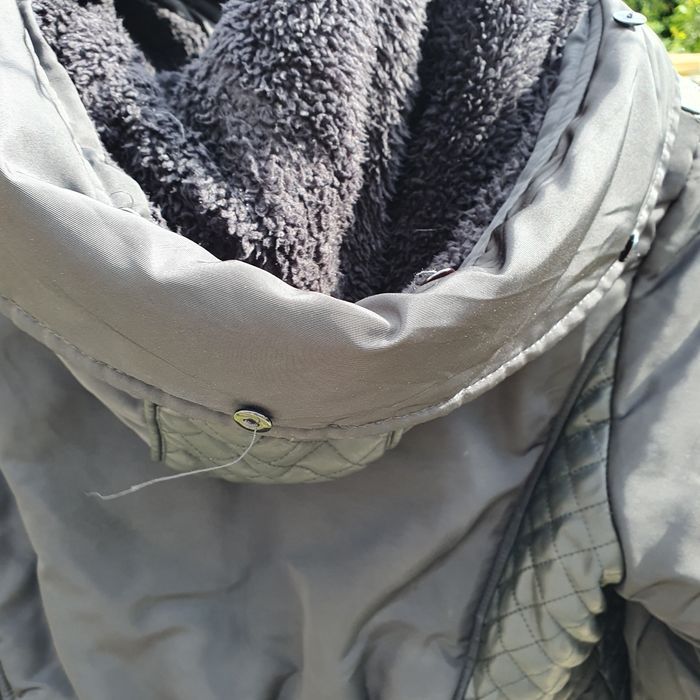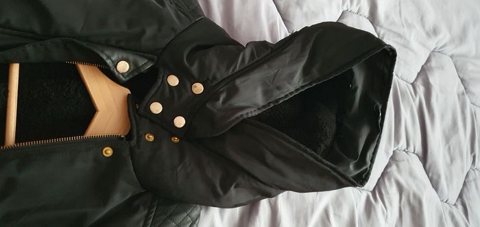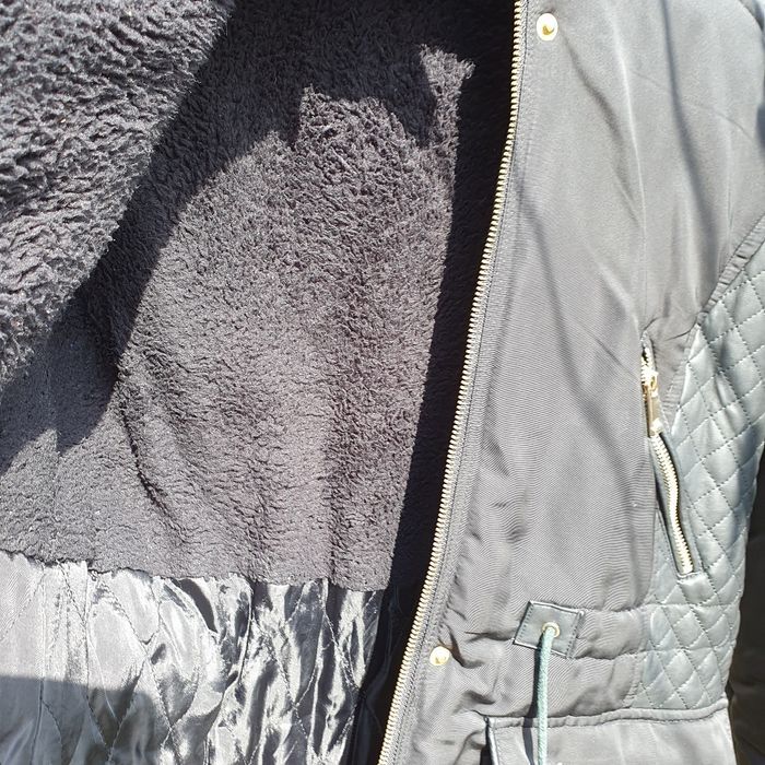plus de fourrure à la capuche, toute doublée chaude sans défauts cordon bien noirs pas comme sur photo. Fermetures ok sans odeur parfait état