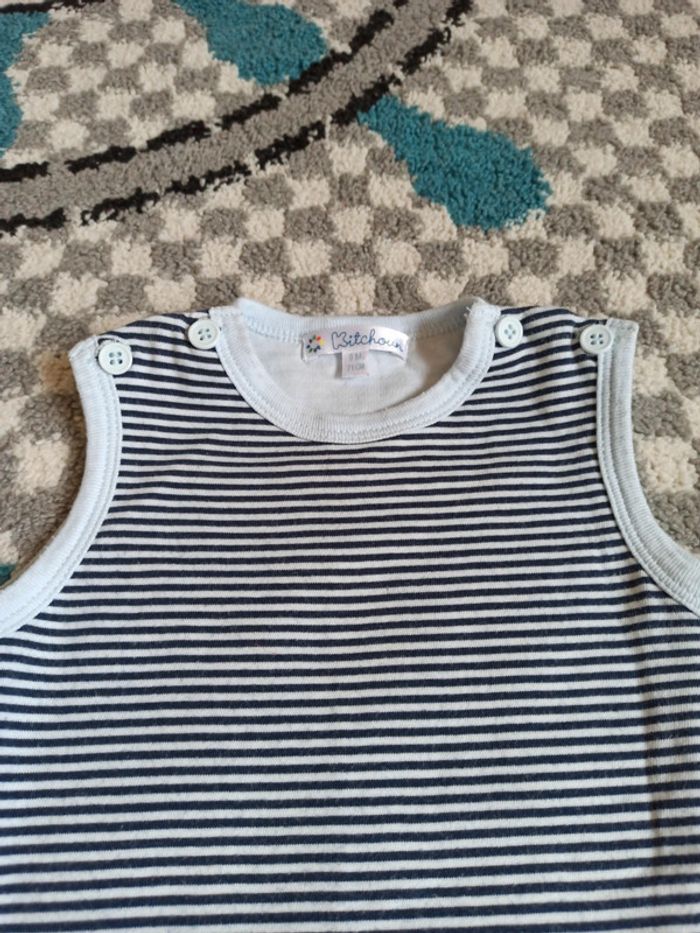 Porté 1 ou 2 fois. en excellent état 👍 Marinière bleue type grenouillère sans manches.. Boutons aux épaules et pression aux jambes 👍. #carlata8_9mois