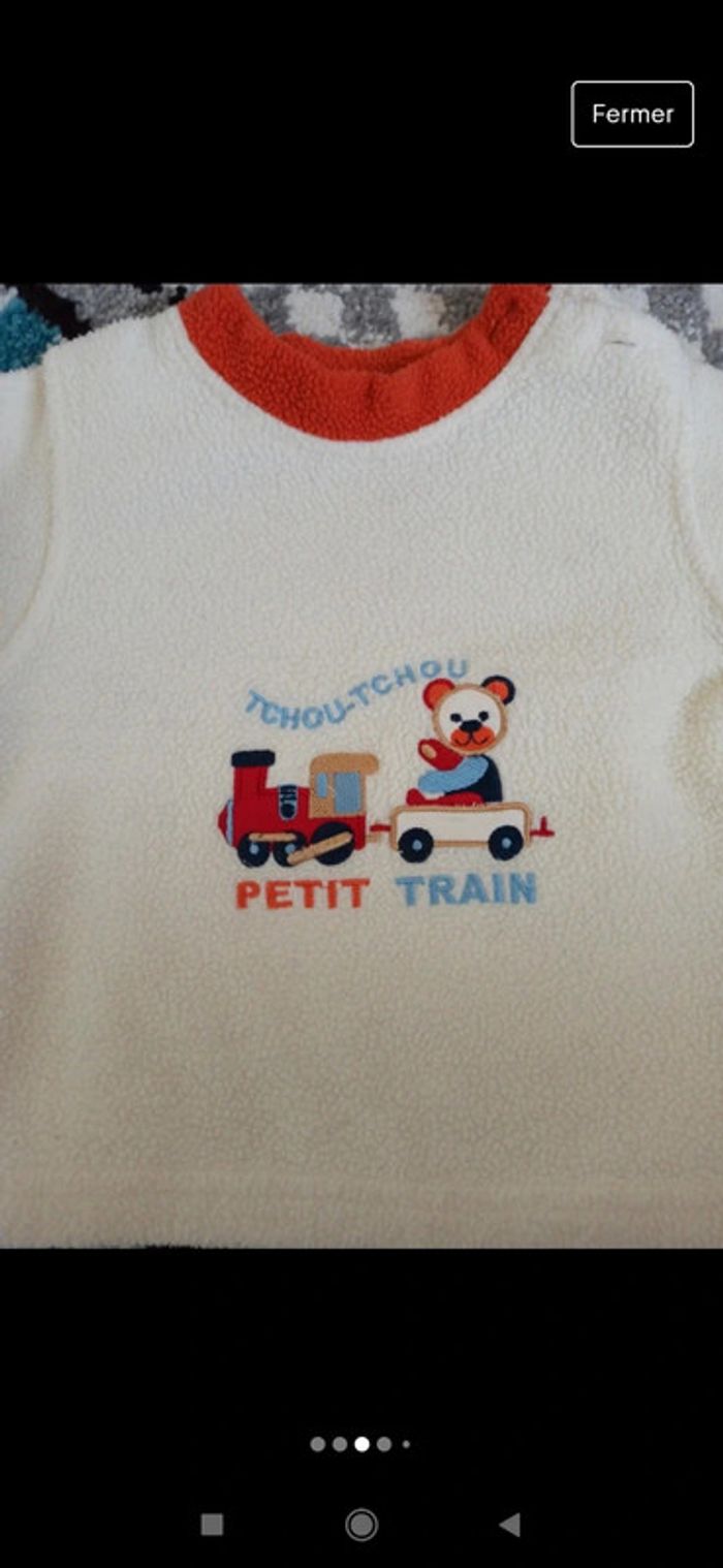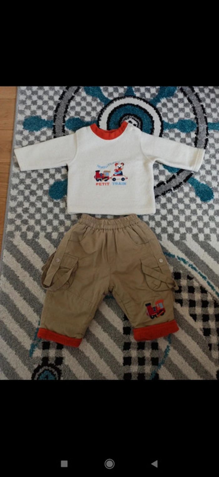 Ensemble haut en polaire et pantalon doublé. Porté 1 fois, comme neuf 👍. Lavé uniquement avec lessive pour bébé et sans soupline 😉. #carlata8_6mois