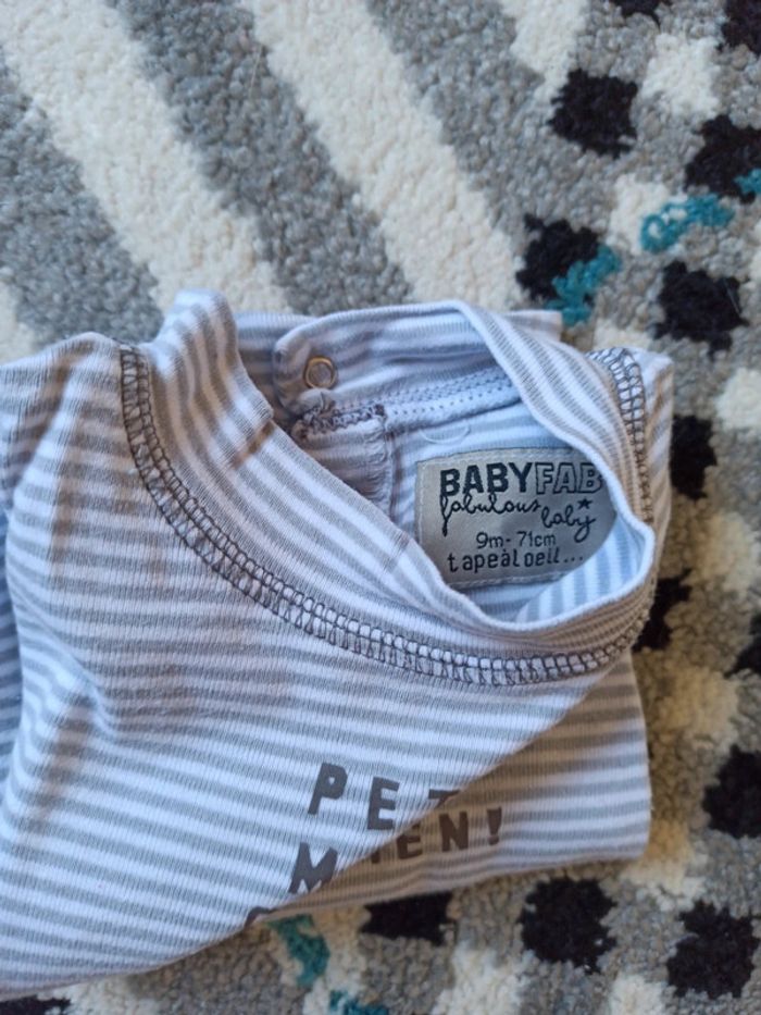 Peu portés. En parfait état, ni tâches ni trous 👍. Ouverture dans le dos.. très pratique. Le Moutarde : Kitchoun et le rayé TAO (noté 9 mois mais correspond à un 6 mois..) Famille non fumeur et sans animaux 😉 #carlata8_6mois