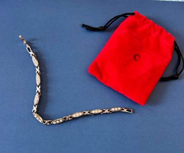 Je vends un bracelet vintage 17 cm de longueur , bracelet en acier, fermeture sécurisée présenter dans une petite poche en velours rouge,, remis en mains propres possible à Chartres, quartier cathédrale ou envoi rapide et très soigné