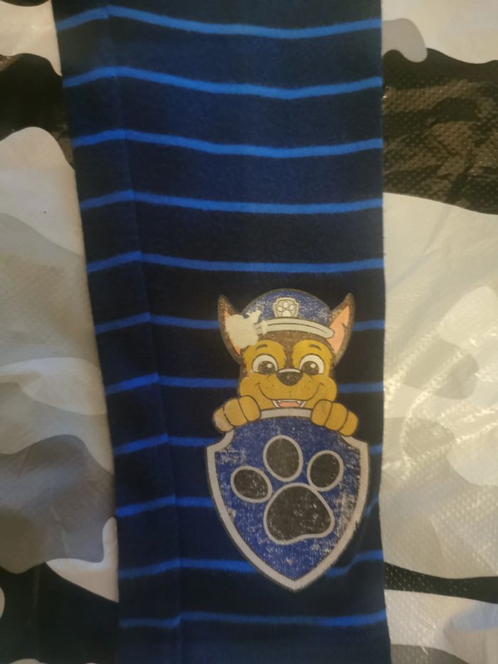 lot de 2 caleçons taille 7-8 ans (122-128) "Paw Patrol". - un rayé noir et bleu avec transfert Chase en bon état, le transfert est abimé. - un bleu et noir motif Marcus et Chase en très bon état. Réduction sur les lots à partir de 2 articles achetés.