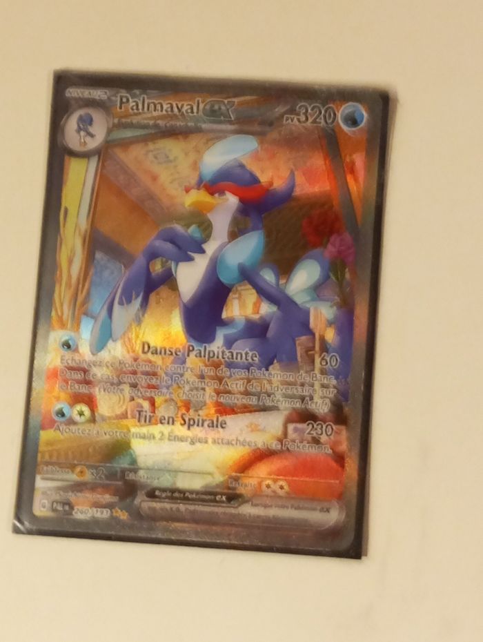 La Carte est en moyen état car elle a une carte pokémon petite blessure sur le côté carte pokémon secrète de la collection palda feat