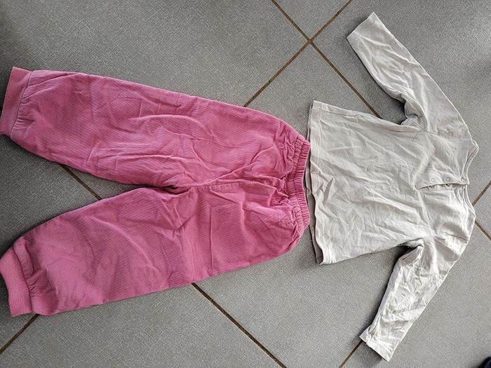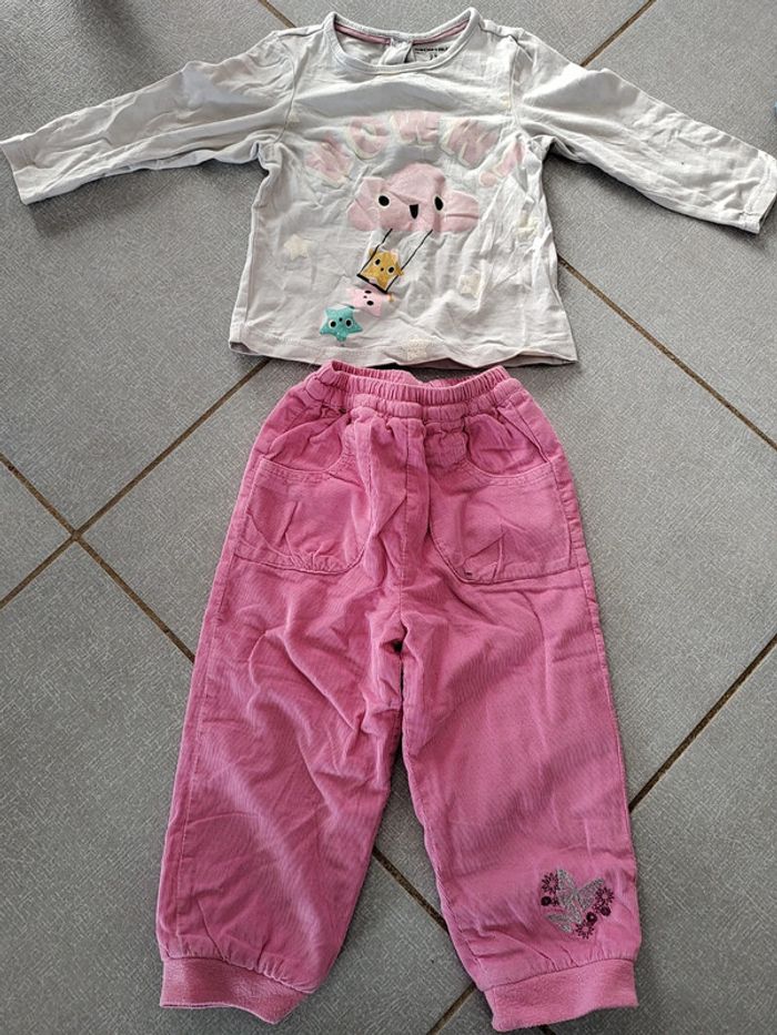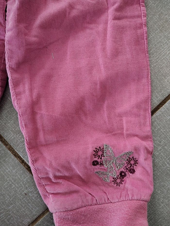 • 1 pantalon en velours avec motif papillons. Poches à l'avant et taille élastiquée