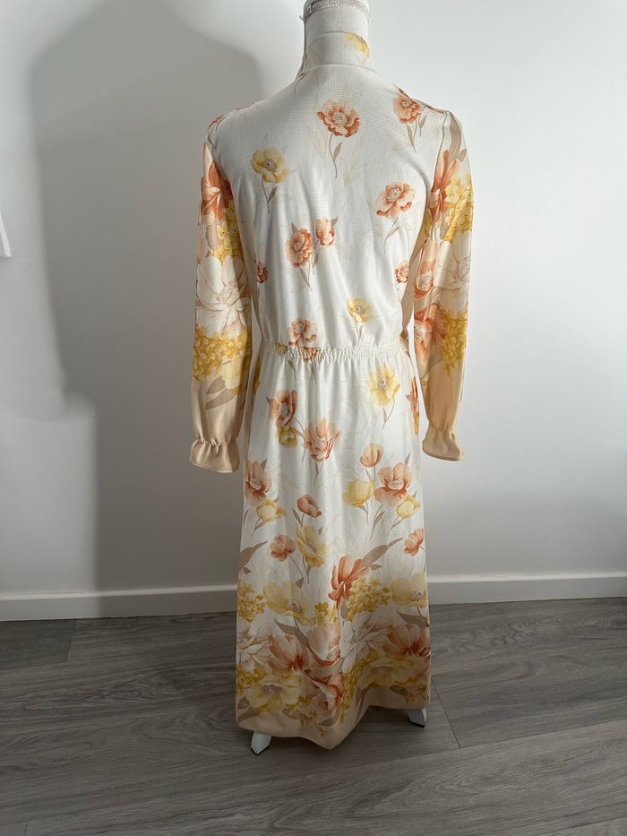 Peignoir kimono long gaufré à fleurs blanc et orange Vintage T40/42 L/XL - photo numéro 9