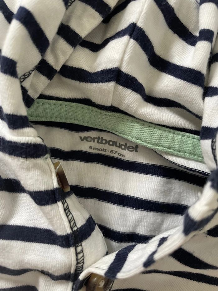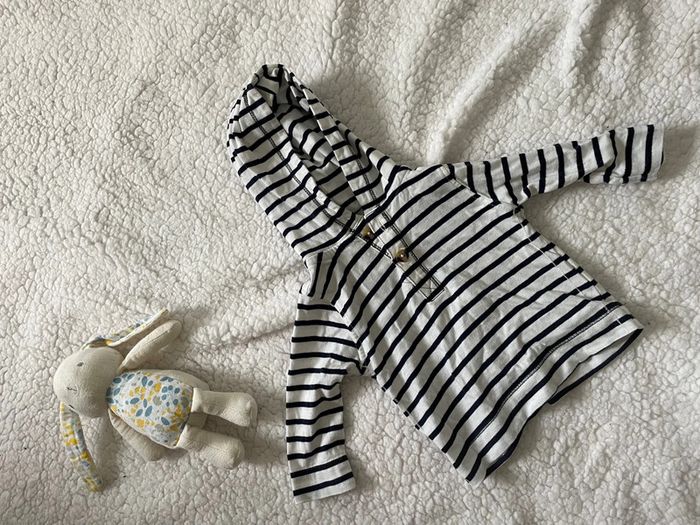 Maillot longues manches avec capuche Rayé blanc et bleu 6 mois