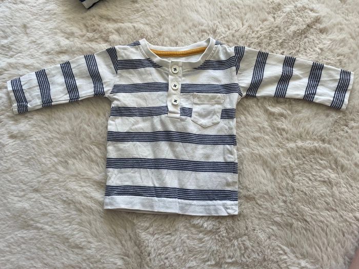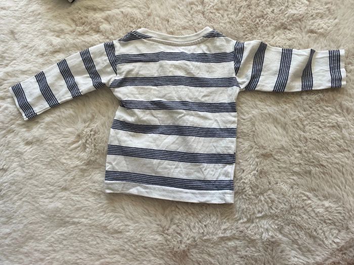 T-shirt manches longues rayé blanc et bleu Taille 0-3 mois Très bon état