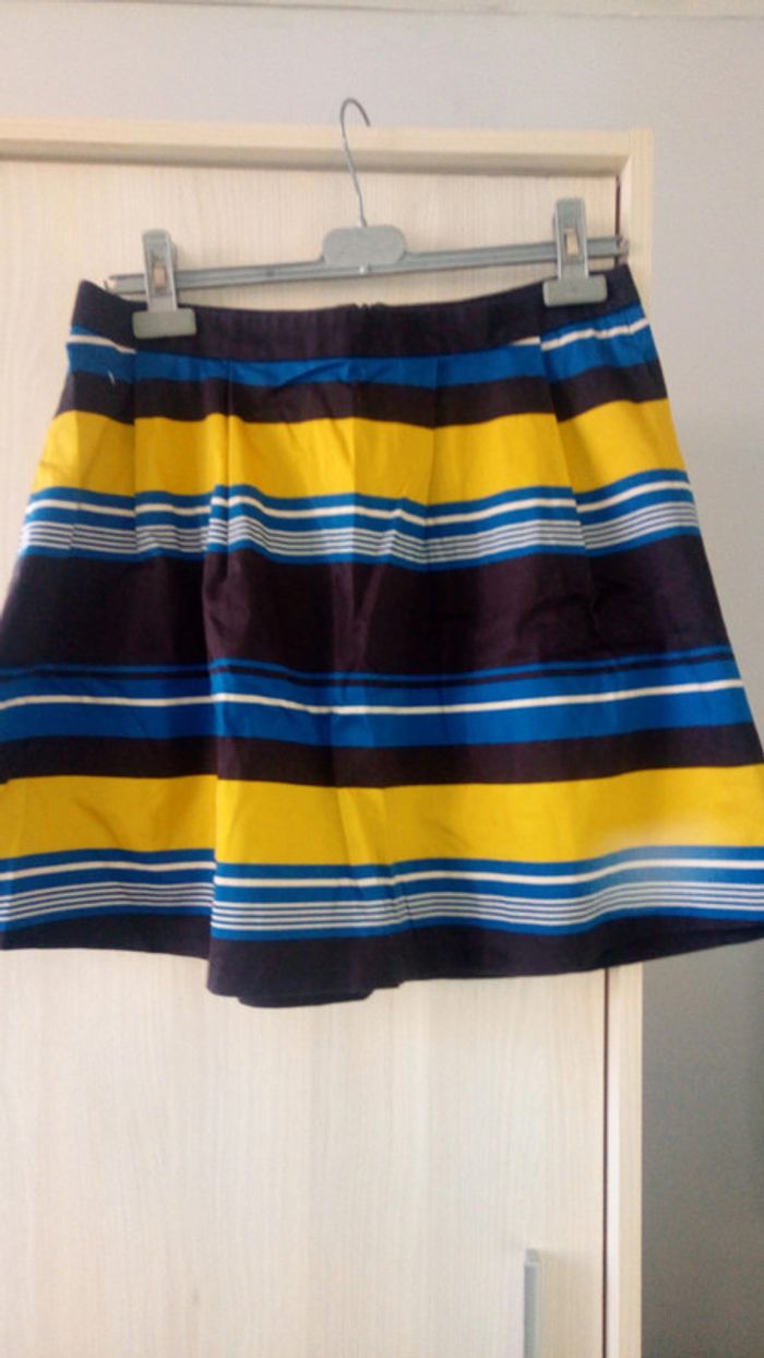Jupe très peu portée dans les tons bleu marine et jaune.