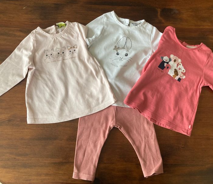 2 tee-shirts manches longues tape à l’œil 1 teeshirt manches longues obaibi 1 pantalon creeks rose