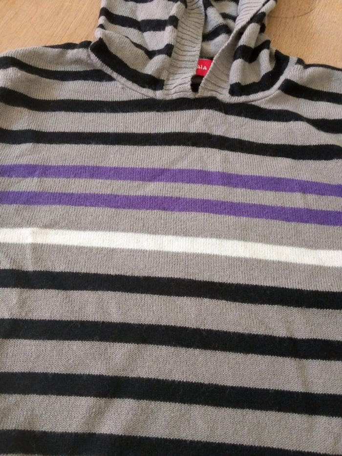Pull fin capuche, gris, rayé. 4 ans. - photo numéro 2