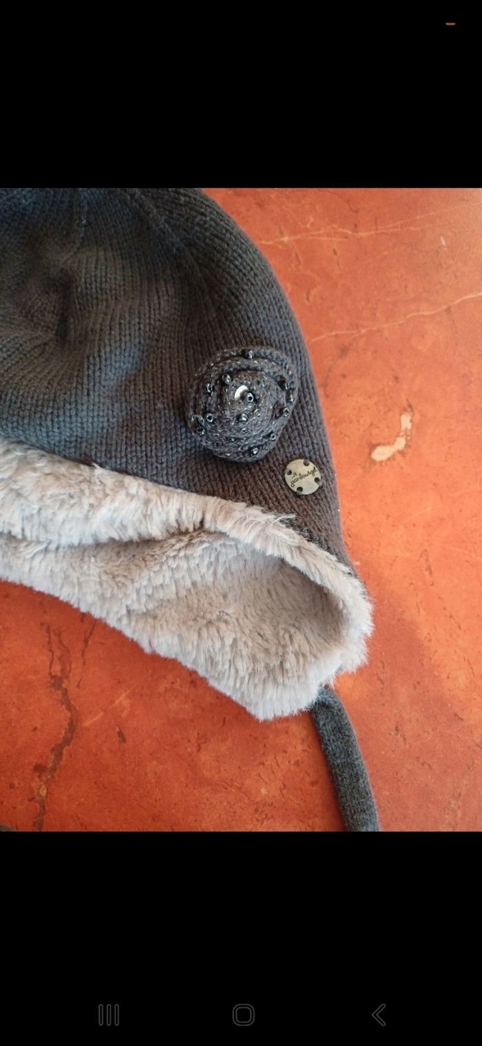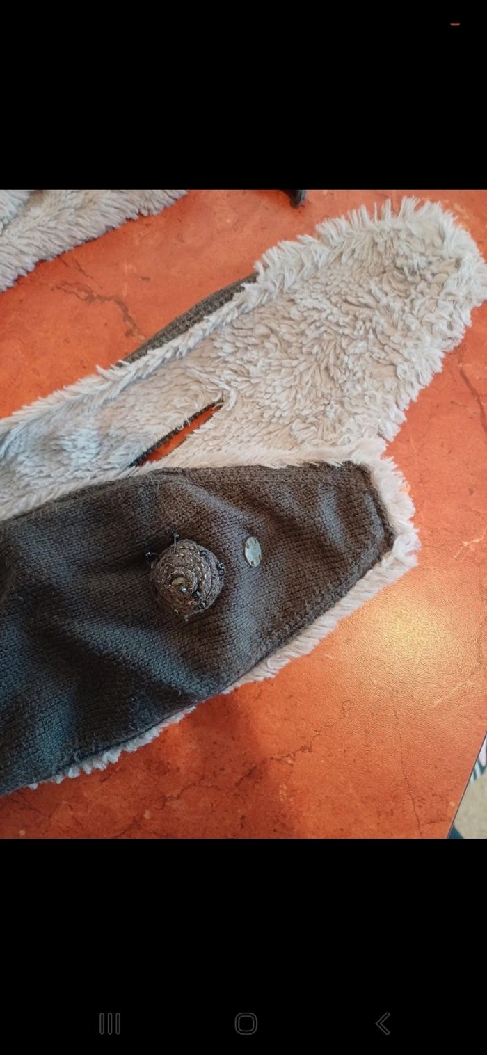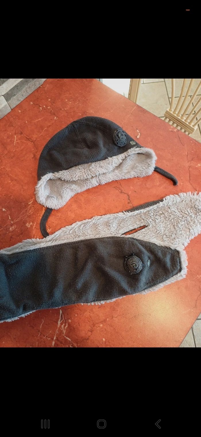 Ensemble comprenant un bonnet fourré avec lien qui se scratche et une écharpe assortie