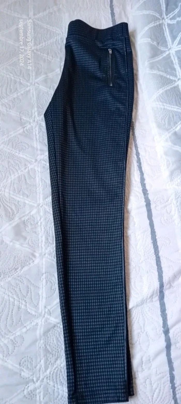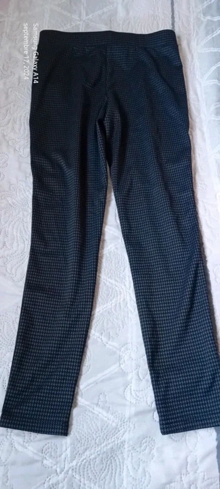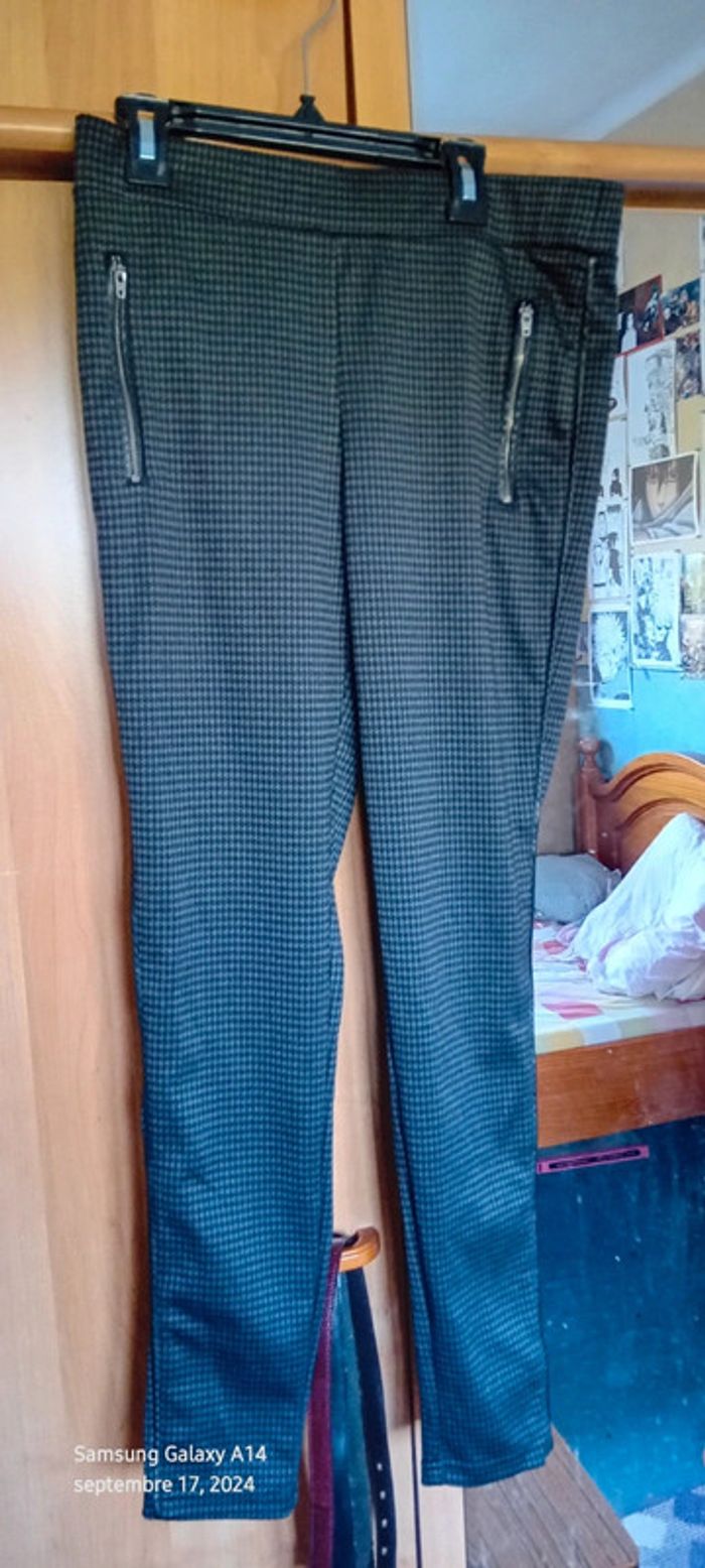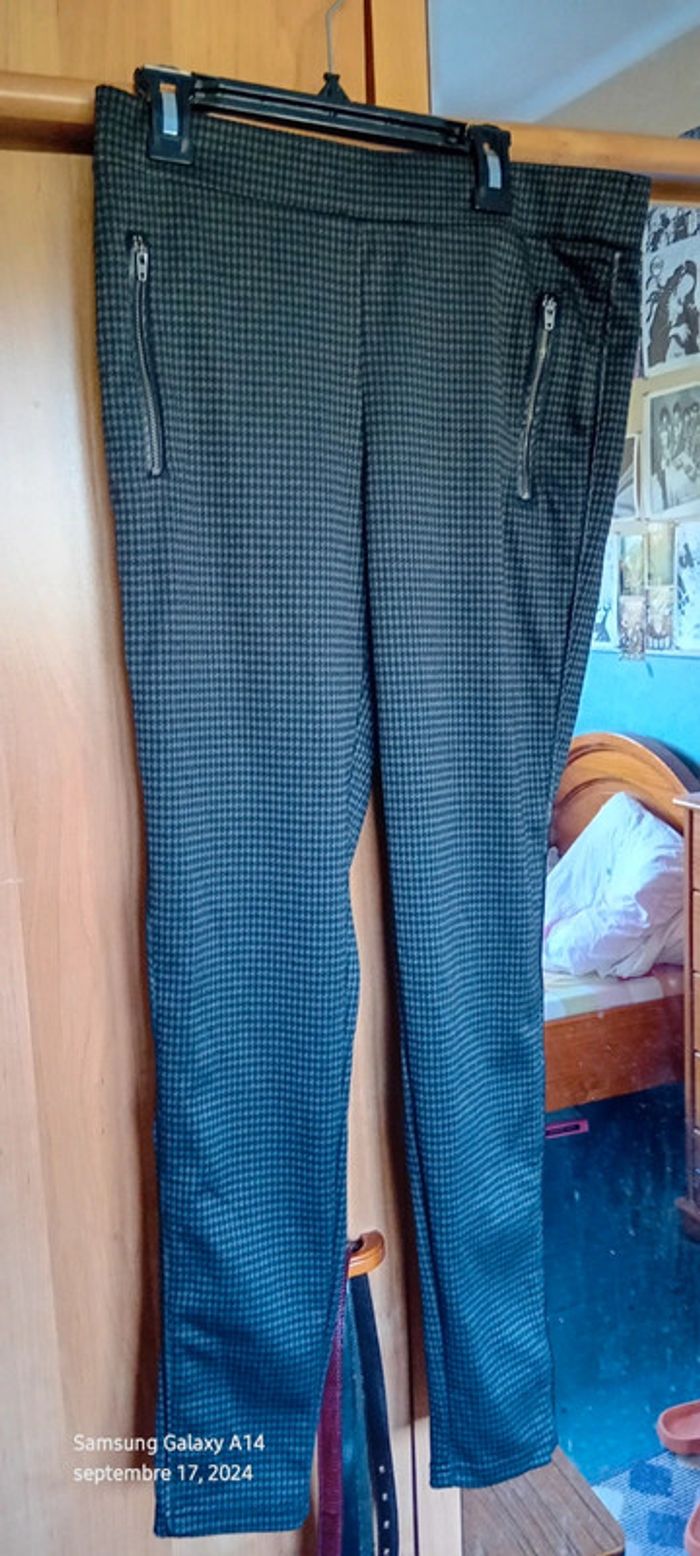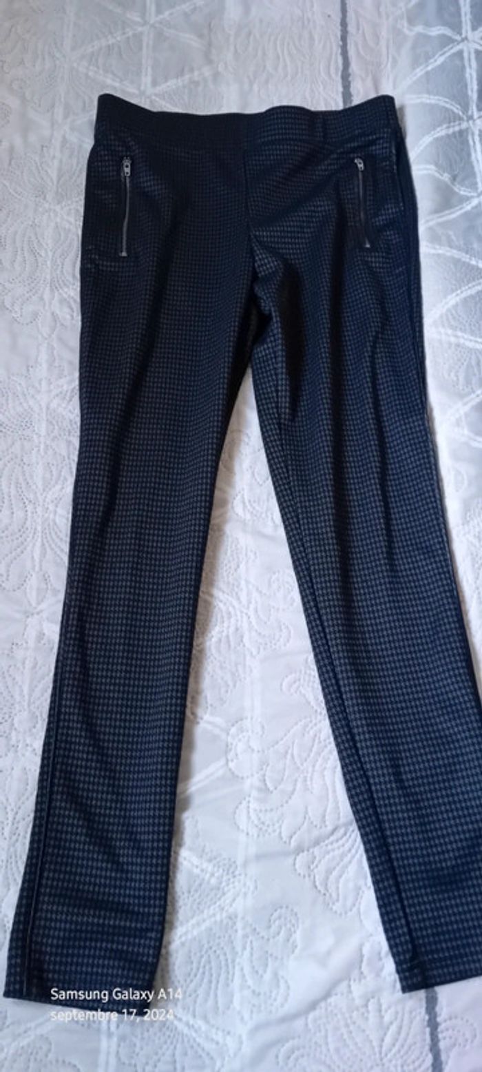 Jegging coupe slim en polyester viscose et elastanne matière satinée et extensible taille élastique poches avec fermeture éclair devant longueur 96 cm largeur hanches 38 cm largeur cuisses 23 cm largeur bas de jambe 12 cm jamais porté état neuf #midole #midolefemme #midolefemme38 #jegging #jeggingslim #femme38 #jeggingfemme38 #h&m #motifniddepoule