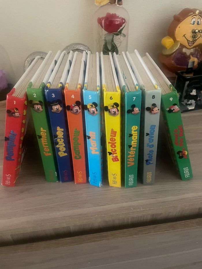 Collection Mickey de 1 à 9 la plus part en bonne état sauf quelques un où le couverture et décoller juste à recoller,je donne avec deux autre livre neuf