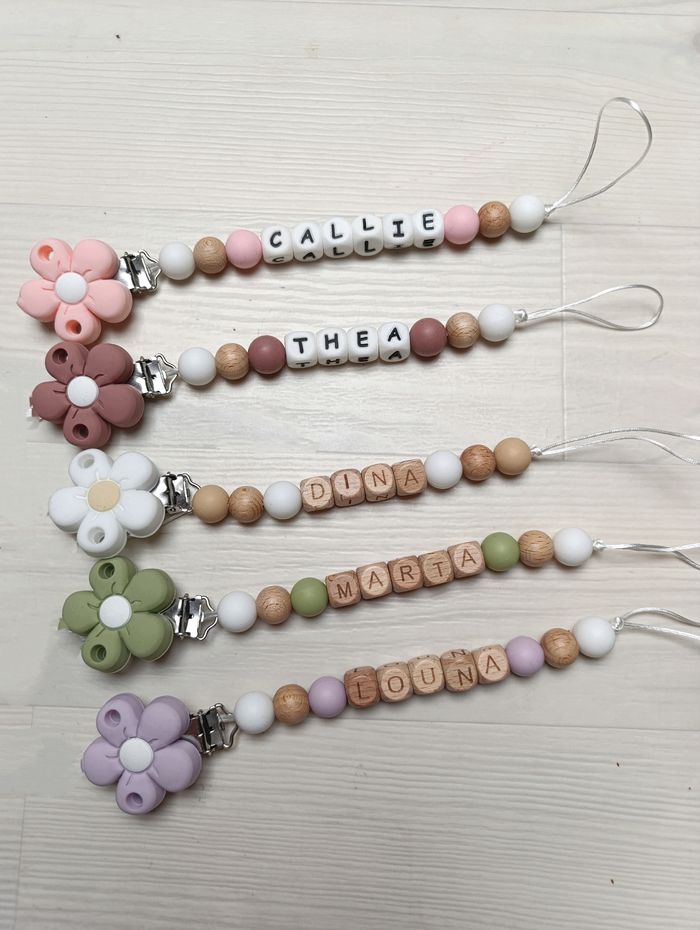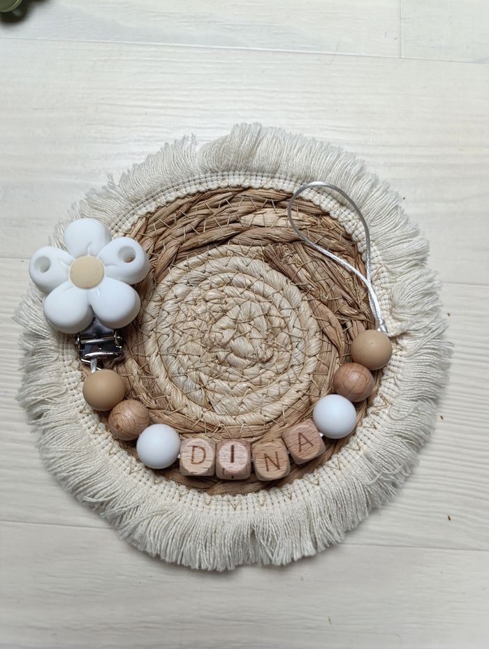 Attache tétine personnalisée Bois naturel et Silicone alimentaire Sans BPA ni autres substances toxique Différents coloris possibles Adaptateur mam vendu en plus a 1€