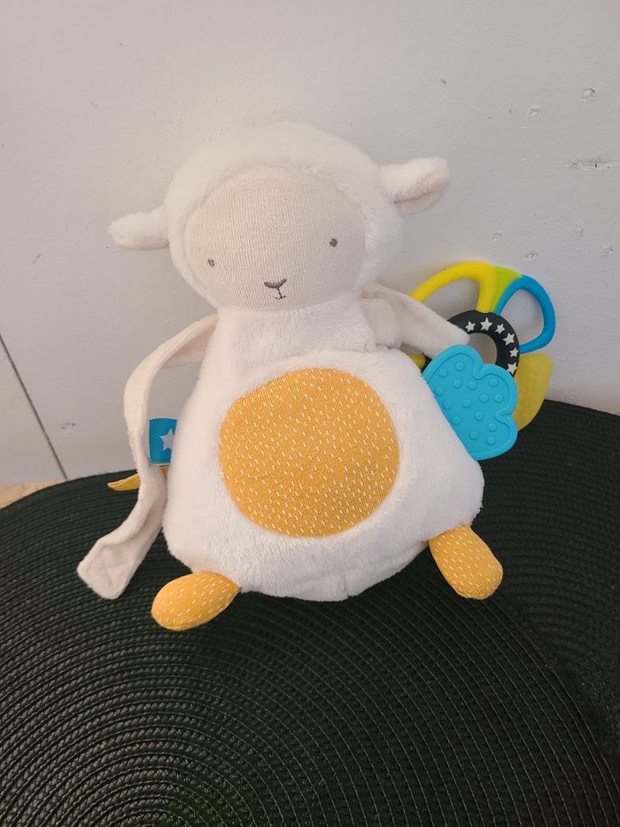 Doudou mouton blanc orange hochet TAPE A L'OEIL - photo numéro 1
