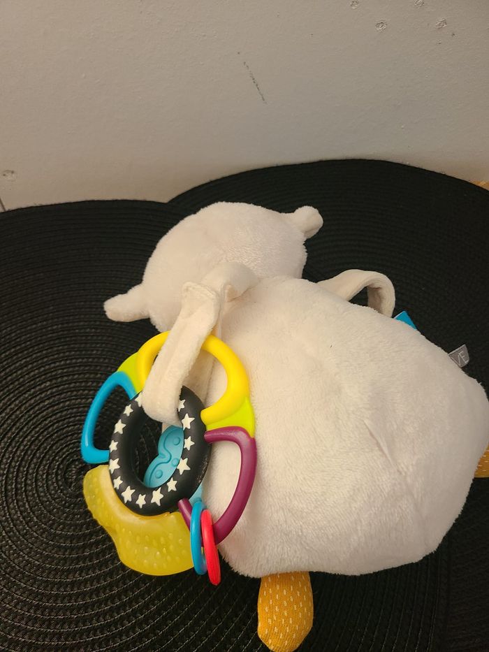 Doudou mouton blanc orange hochet TAPE A L'OEIL - photo numéro 4