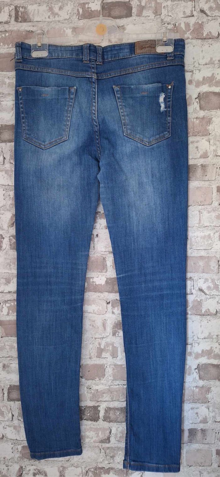 FEMME 40 / L N°2344 jeans bleu Delave / troué Longueur 99 cm Taille 40 / L Stradivarius 8,50€ #kelly_femmeT40