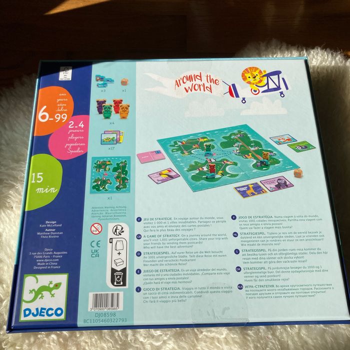 Jeu djeco Around the world Around the world est un jeu de parcours où vous enverrez des cartes postales des lieux visités pour décider qui aura fait le plus beau des voyages. Dès 6 ans.