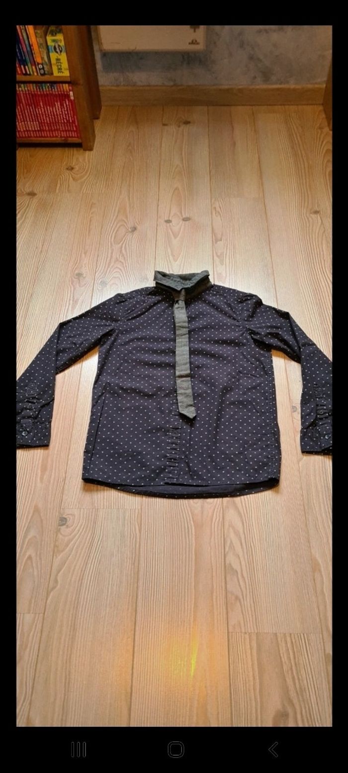 12 ans Manches longues Bleu marine avec des petites croix grises Cravate amovible La cravate se ferme par un scratch Portée 1 fois