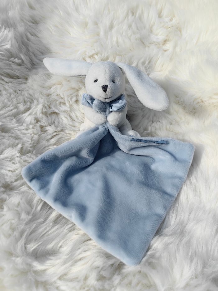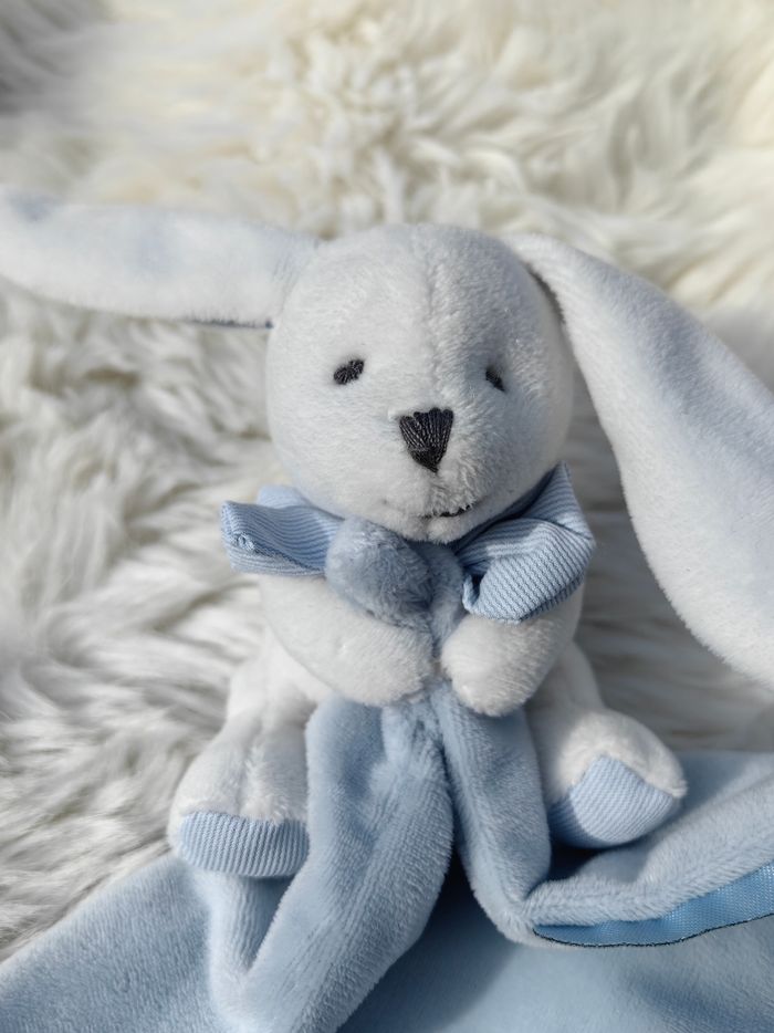 Doudou Mouchoir Lapin Bleu Boîte fleur Doudou et Compagnie DC3338 Blanc et bleu - photo numéro 5