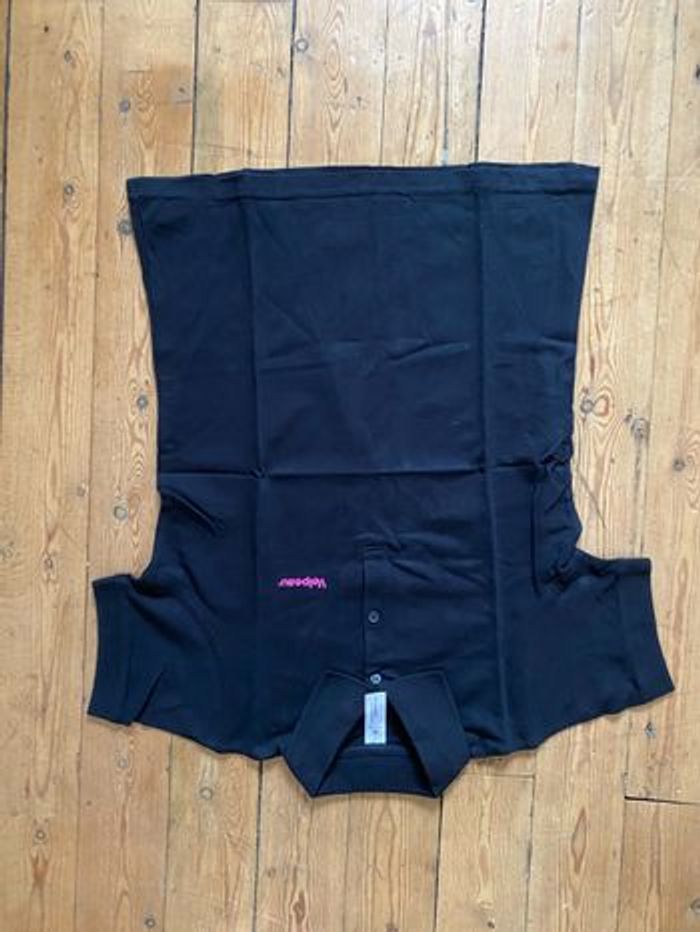T-shirt polo femme noir neuf 100% coton Manches courtes Taille 38 Carrure 33,5 cm Aisselle à aisselle 46 cm Longueur 58 cm Broderie poitrine fuschia Velpeau