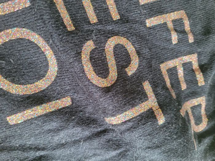 Porté mais très bon état. Inscription pailletée qui ne part pas en machine.