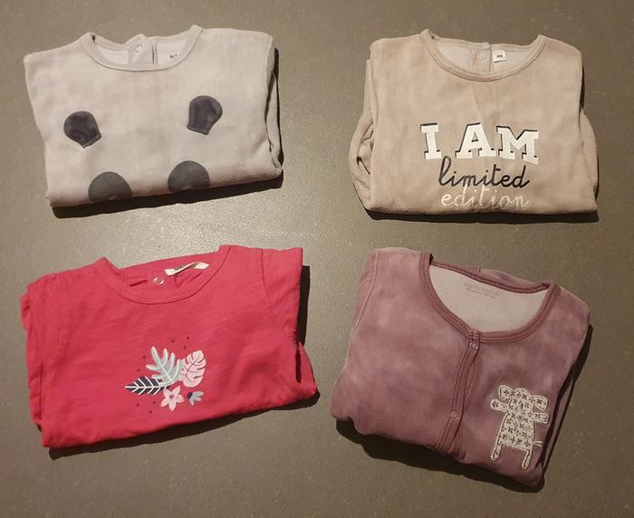 Pas de trace d'usure ou de dégât sur les parties visible. Il y a un peu d'usure au niveau des pieds pour les pyjamas 1 pièce.