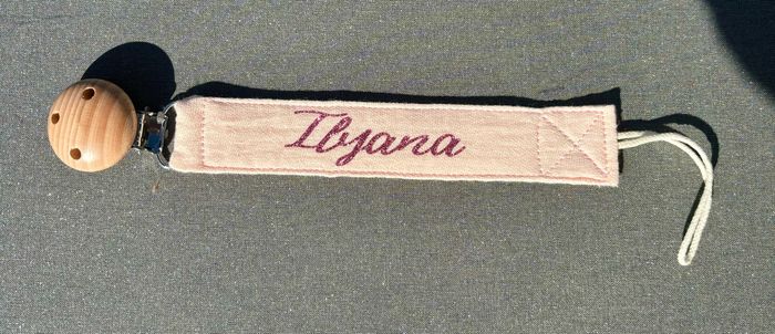 Attaches tétines en gaz de coton. Prénom possible. Envoyé moi un message pour plus de renseignements.