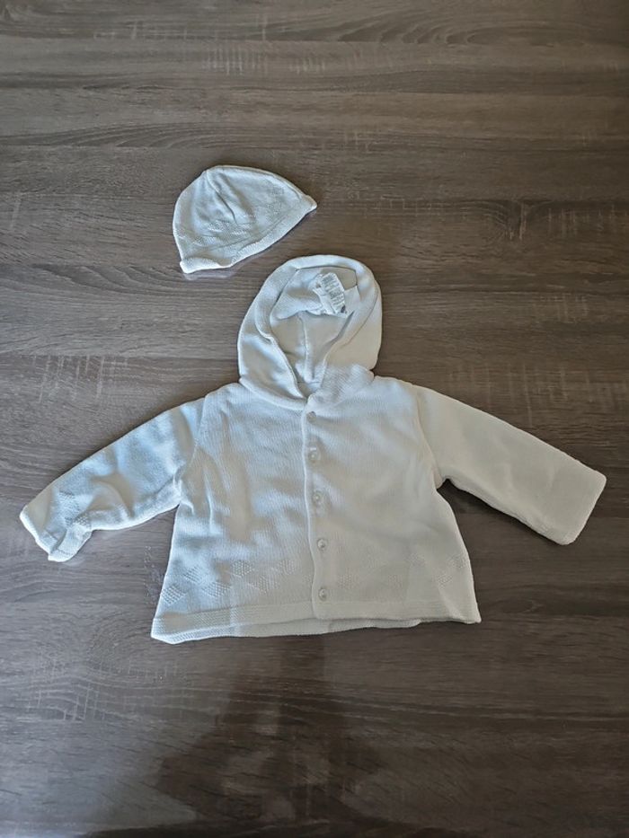Gilet +bonnet mixte Idéal sortie de maternité 3 mois tex