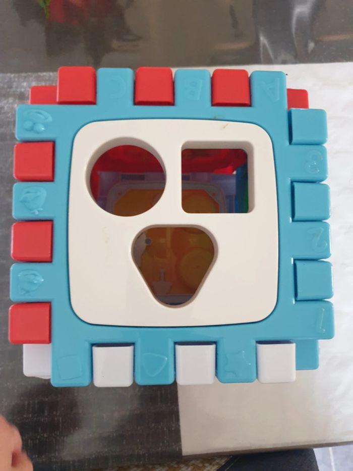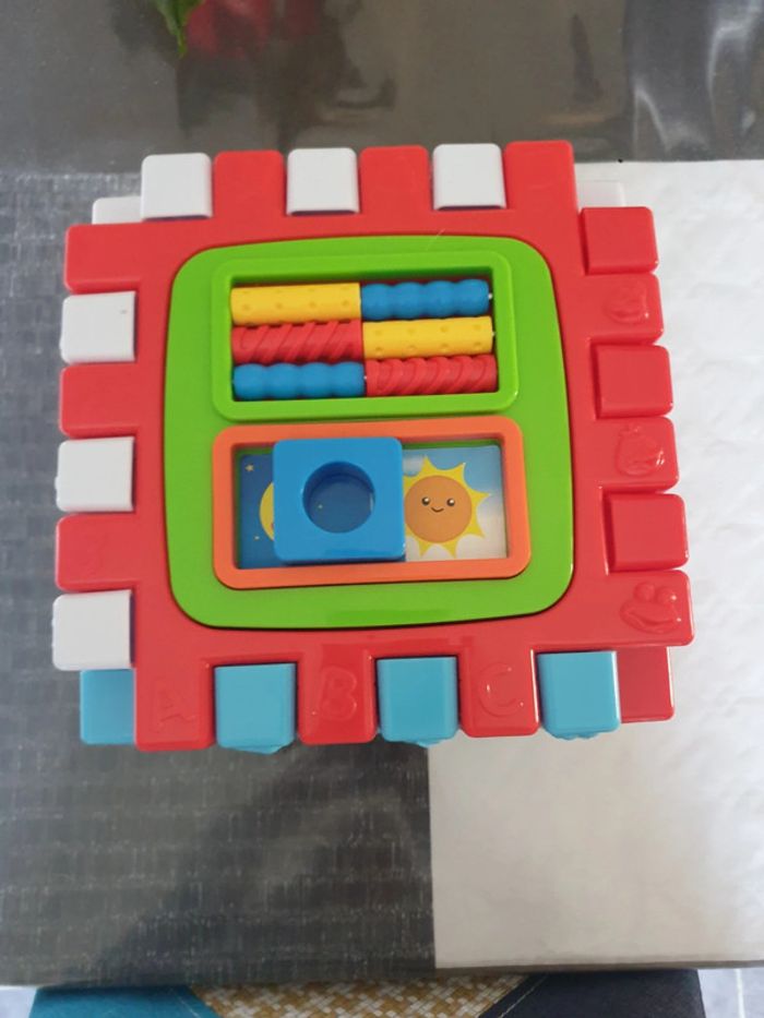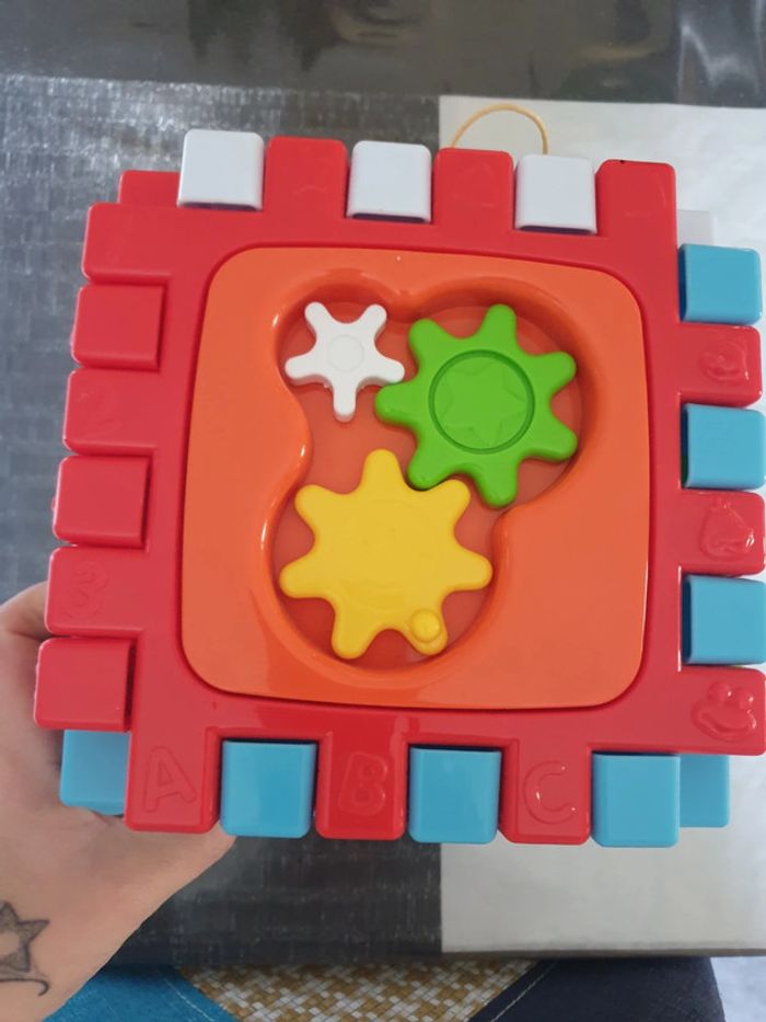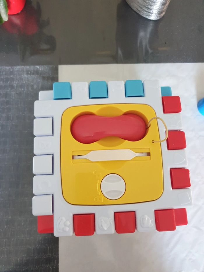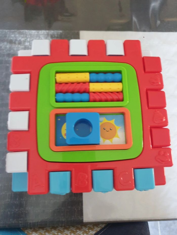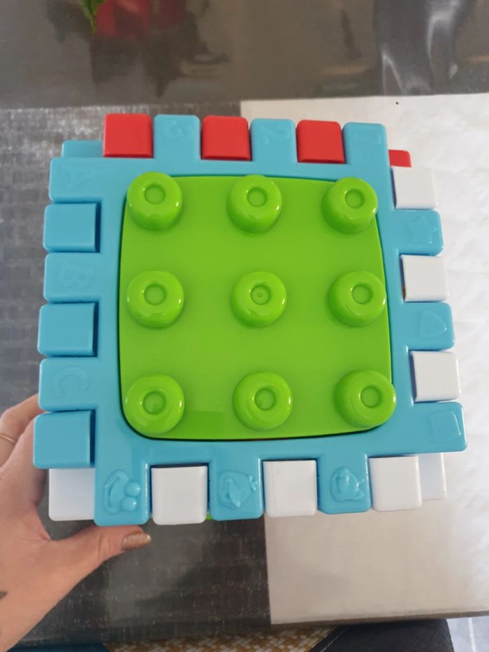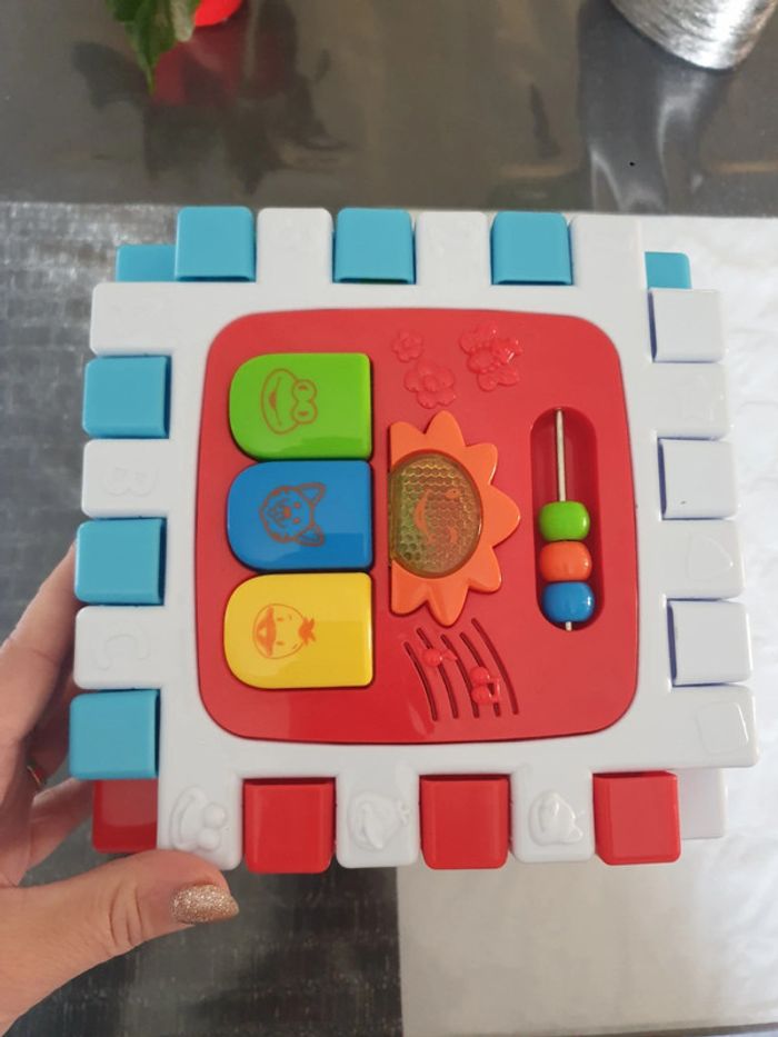 Cube d activité musical Peut se démonter pour se mettre a plat Comme neuf Des tt petit, pas de petite pièces.