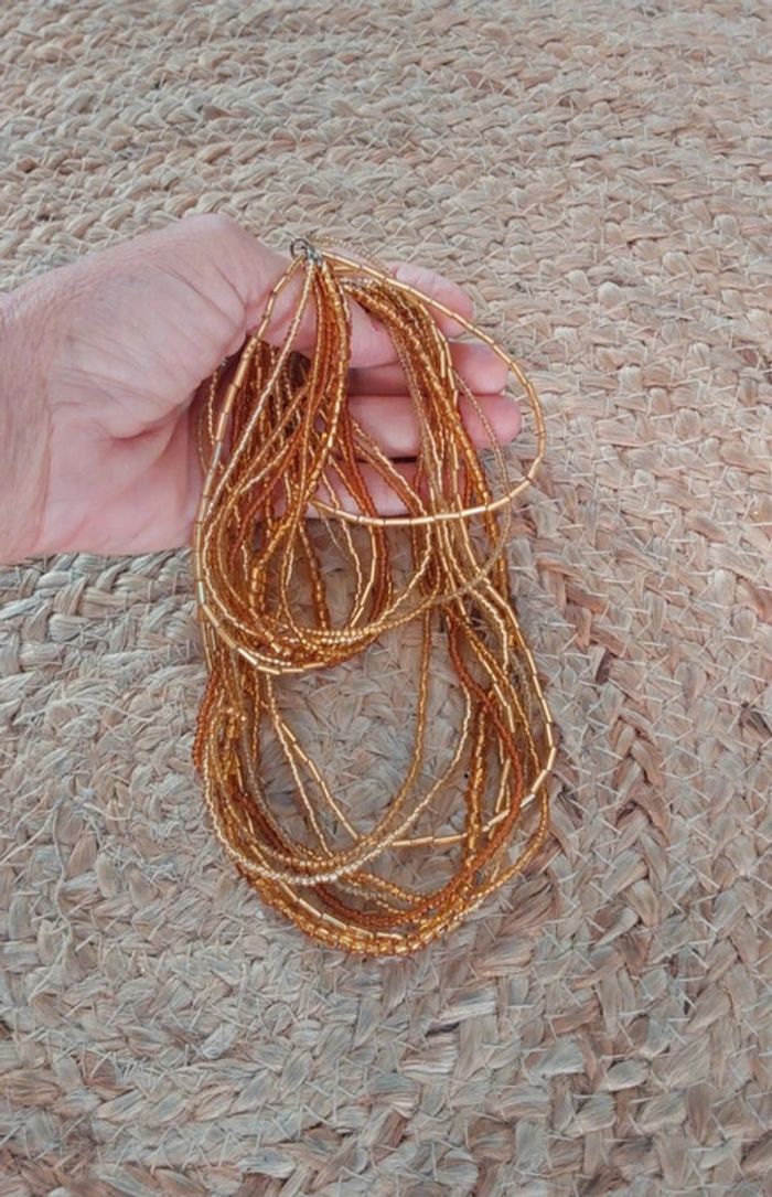 9 rangs de perles rondes ,longues ,perles de rocailles ..... Fait main ,modèle unique . N hésitez pas à visiter mon profil et laissez vous guider par mes différents # #clementine13430bijoux #piècesuniques #bijouxperlesdorees