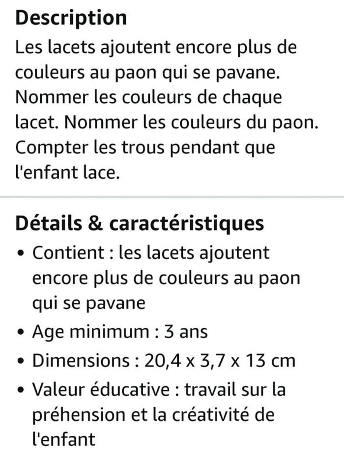 Jeux de laçage pour apprendre la motricité la créativité et le langage des couleurs 34 pieces tout neuf à partir de 3 ans