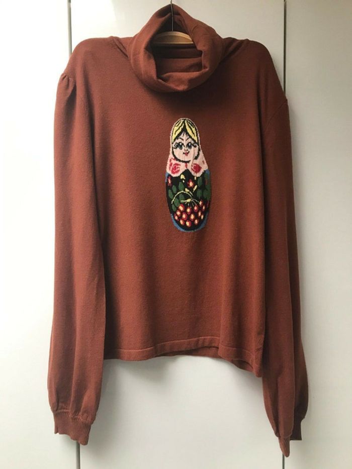 Pull col roulé marron Vue sur Mer Taille L La mesure d'aisselle à aisselle est de 47 cm