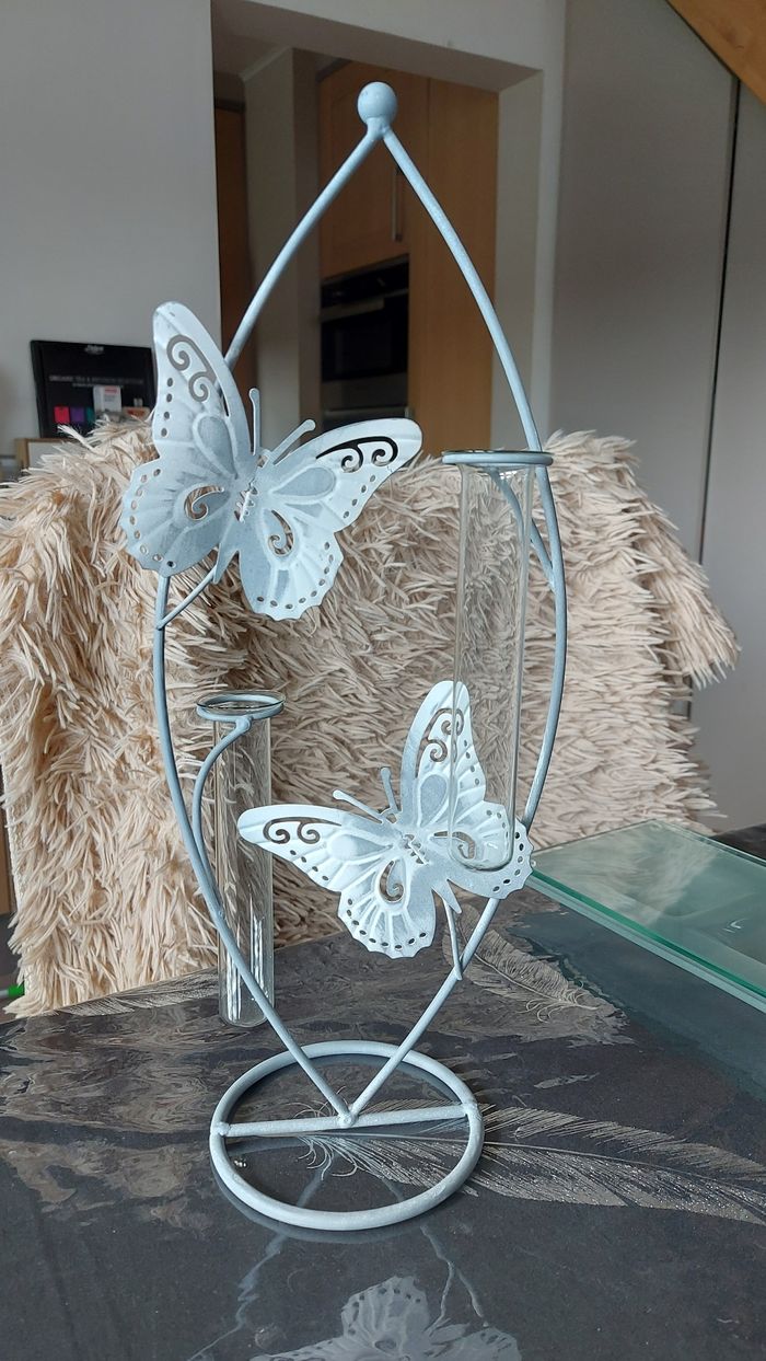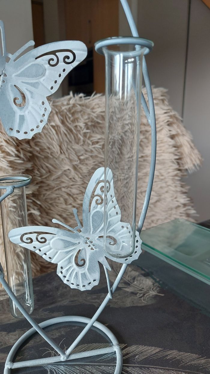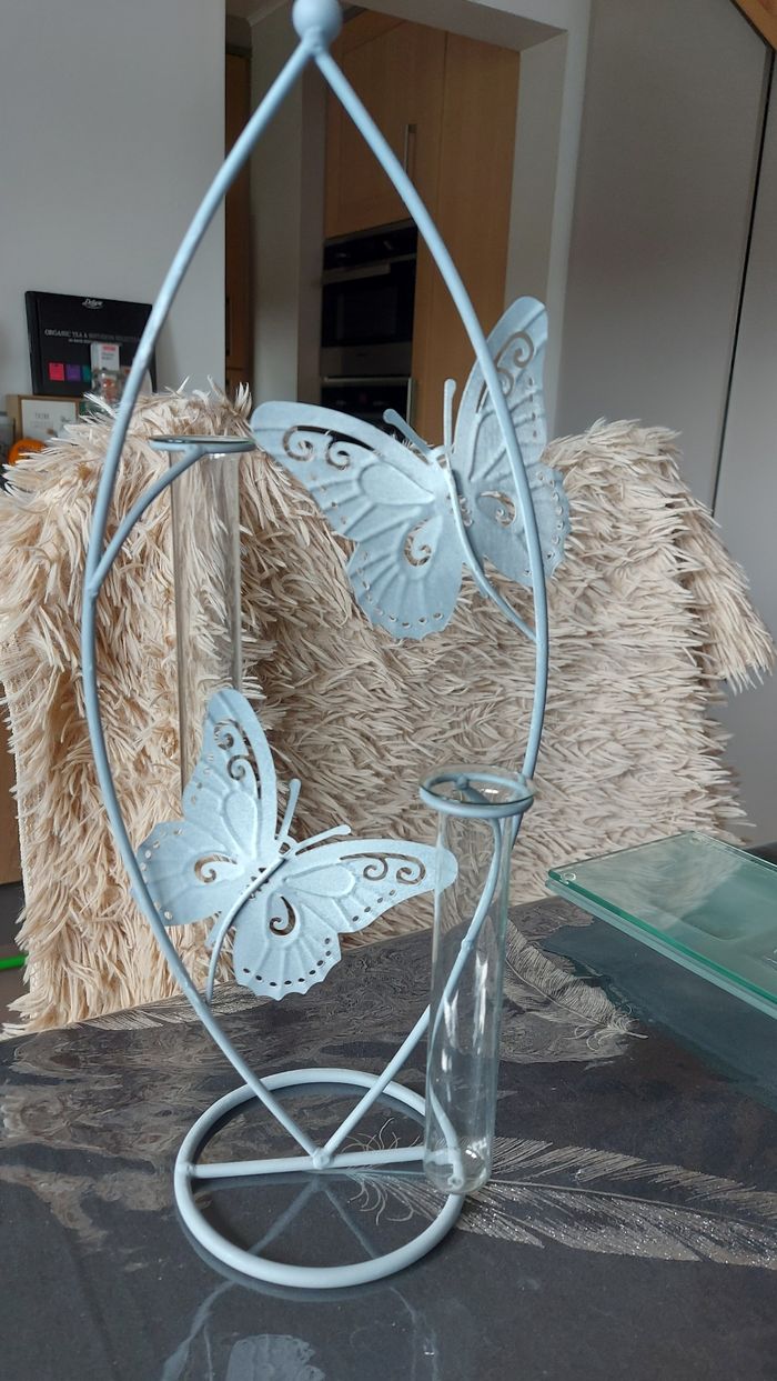 Vase double soliflore, cadre en métal, pipettes en verre Ht 40,5 x L 16 x diamètre base 11,5 cm