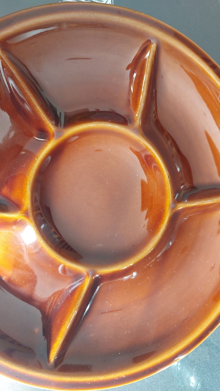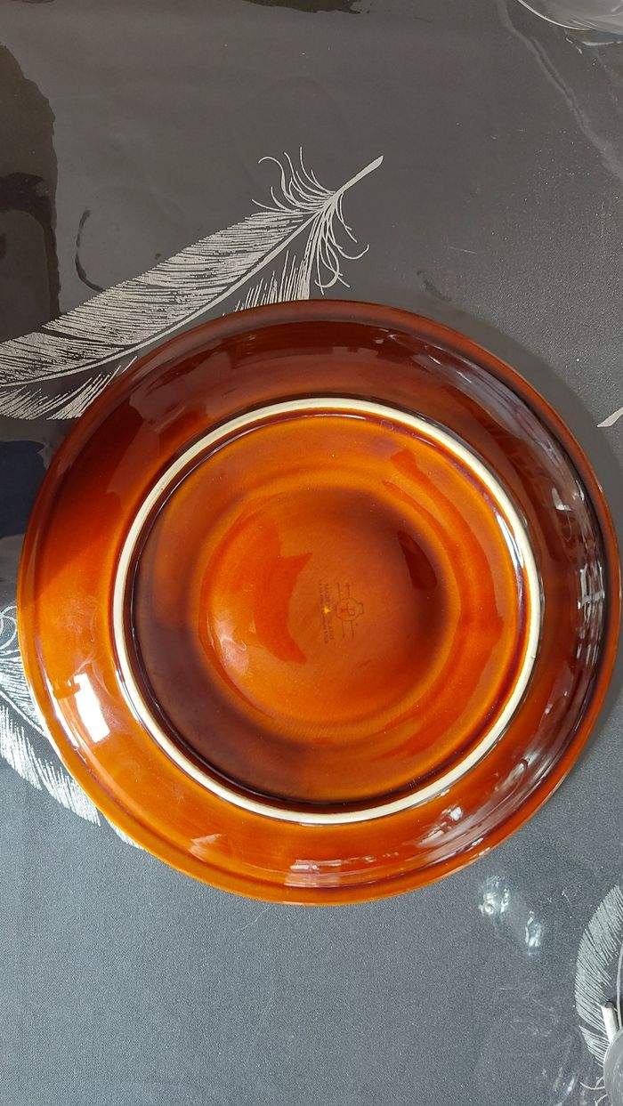 Assiette brune pour fondue ou apéritif, diamètre 24,5 cm. Fabrication hollandaise