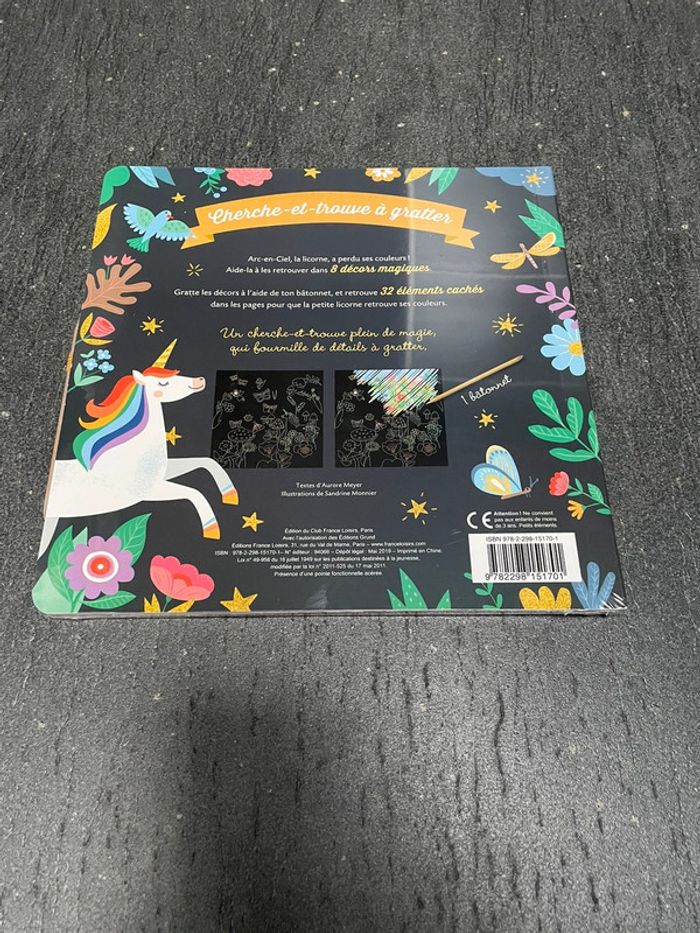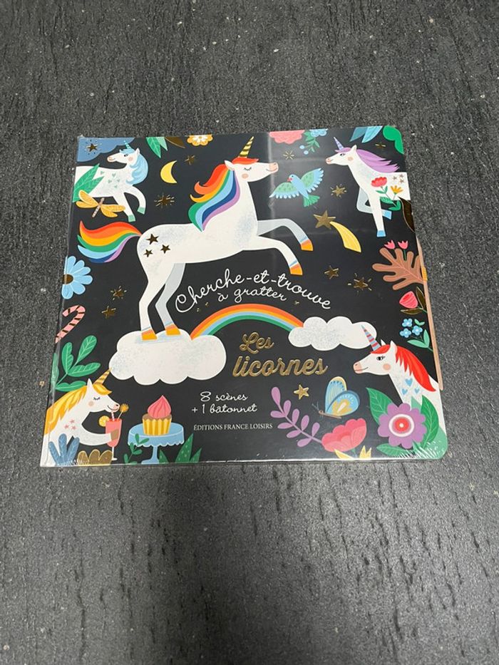 Neuf Cherche et trouve les licornes livre à gratter Grattoir bois inclus