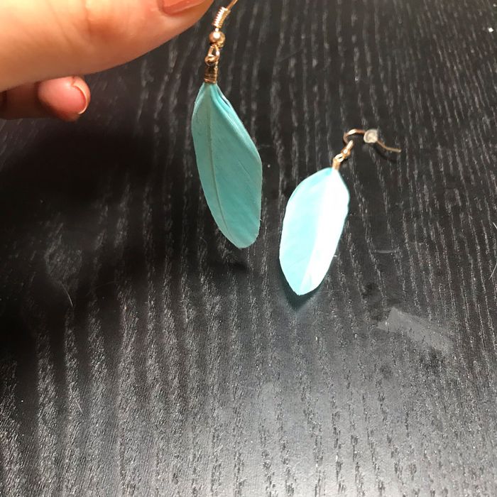 Boucles d’oreilles pendantes plumes turquoises - photo numéro 2