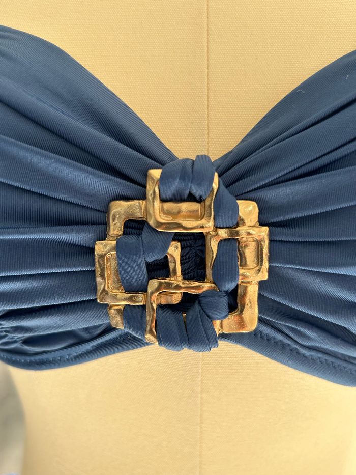 Maillot de bain 2 pièces bleu culotte ajustable et bijoux sur le soutien gorge - photo numéro 1