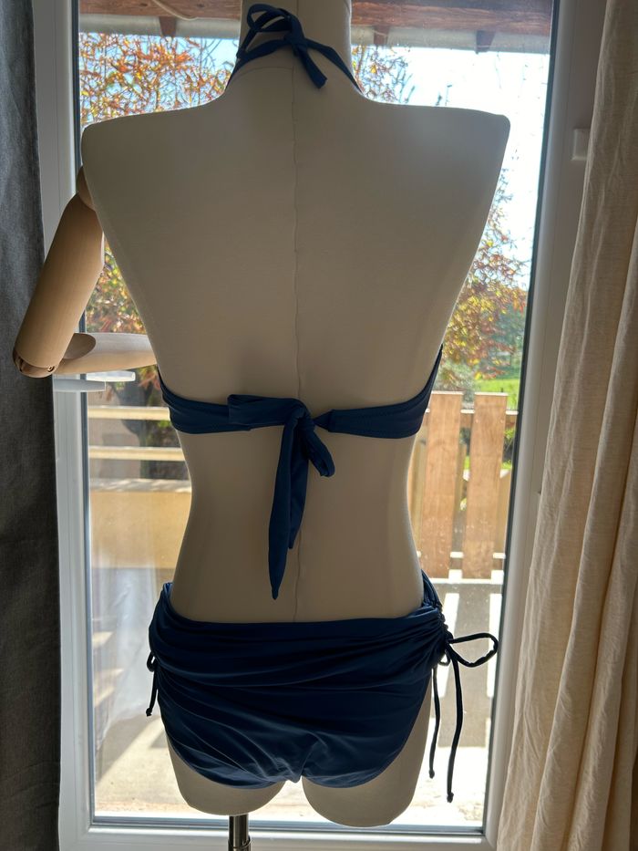 Maillot de bain 2 pièces bleu culotte ajustable et bijoux sur le soutien gorge - photo numéro 8