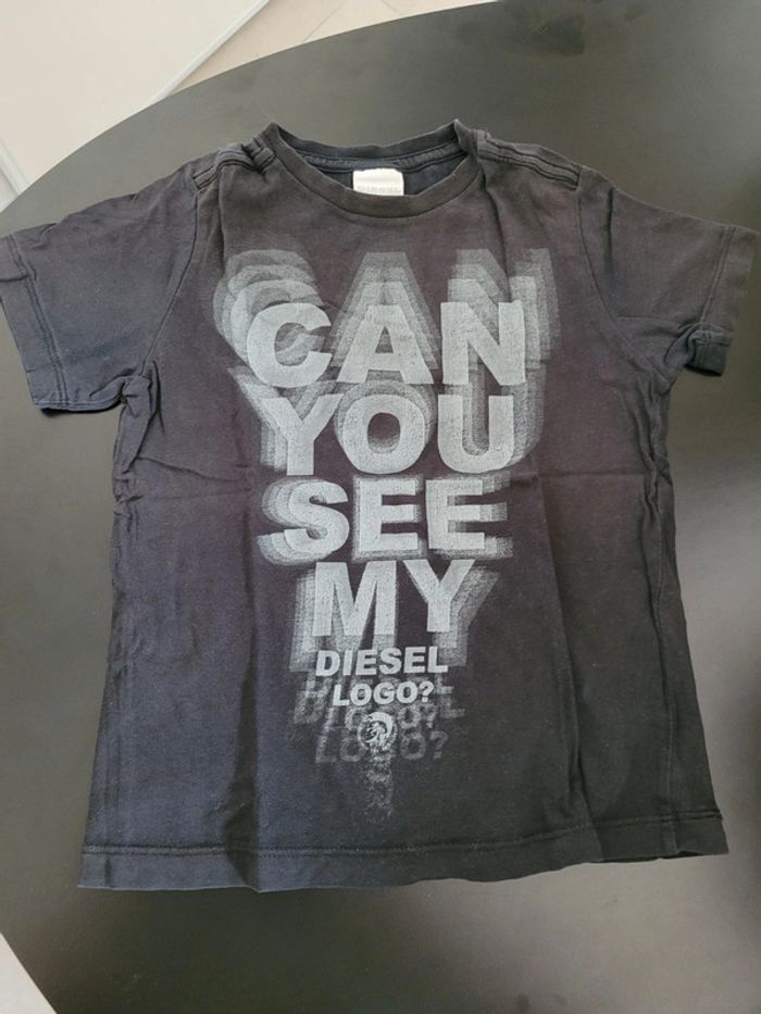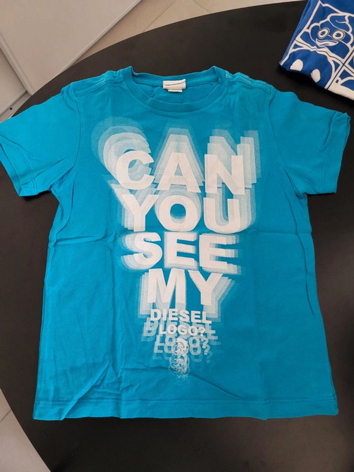 Lot 3 tee-shirt garçons 6 ans : - 1 bleu marine IKKS - 1 noir Diesel - 1 turquoise Diesel (1 petit trou en haut dans le dos au niveau du cou : cf dernière photo).