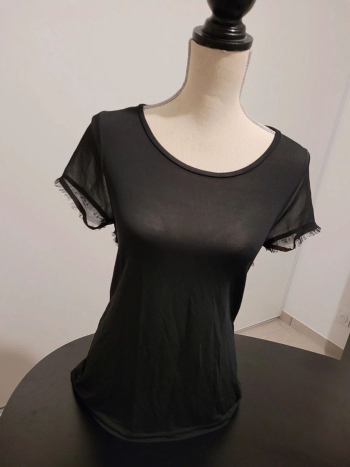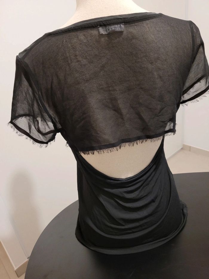Attention ⚠️ affaires à saisir !!! Lot de 2 très beaux haut sexy pour femme noir pour soirée avec couture de dentelle à recoudre sur de petits endroits : indiqué sur les photos. Rien de très difficile à faire pour celles qui maîtrise la couture !. Un débardeur Naf Naf taille 36. Un dos ouvert Claudie Pierlot taille 2.