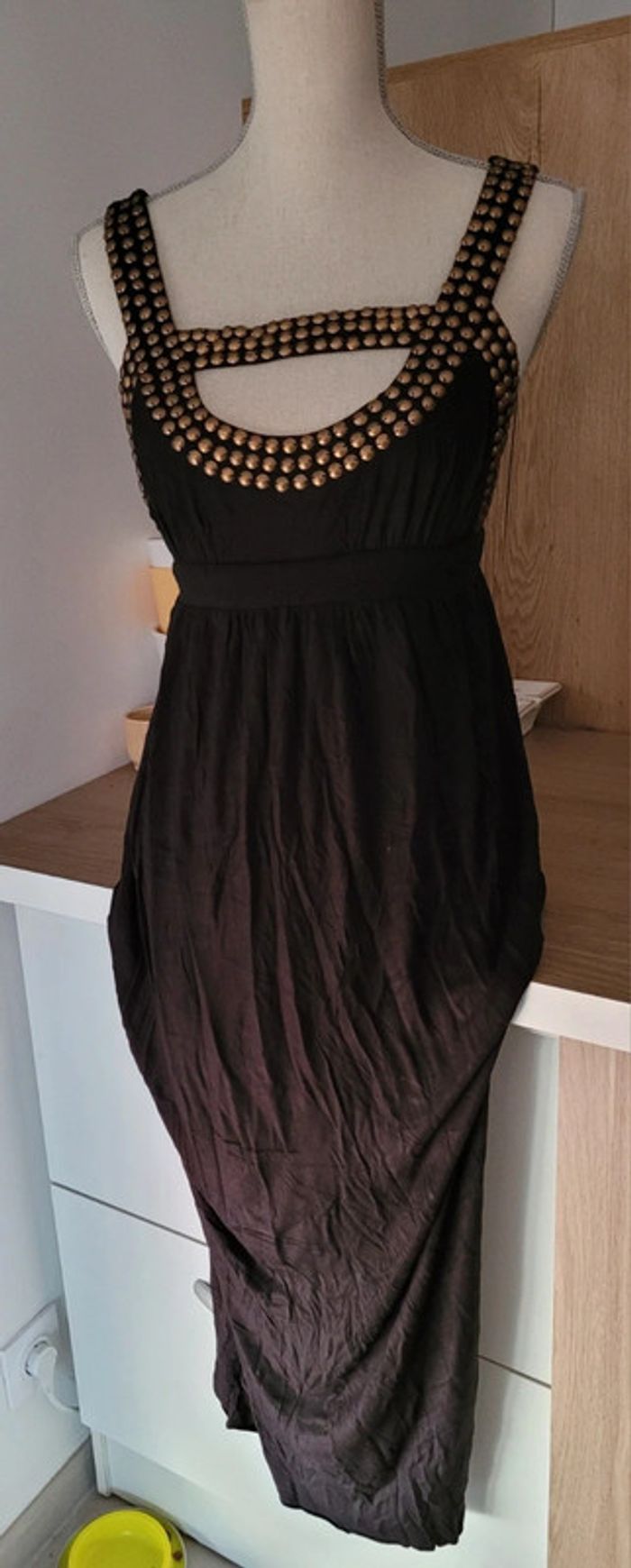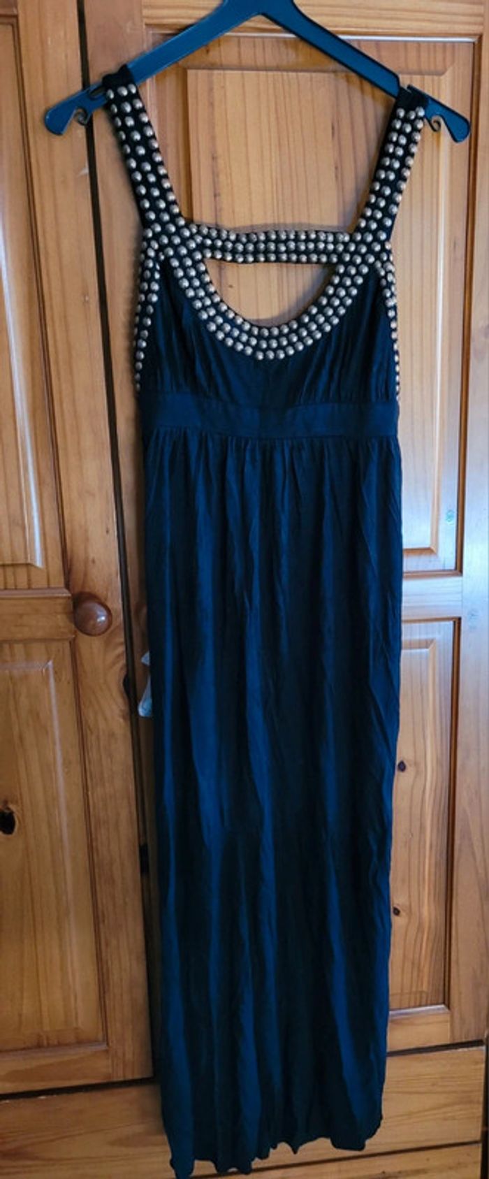 Jolie robe 👗 longue noire taille 34. Léger fil tiré dans le dos peu visible : cf dernière photo.