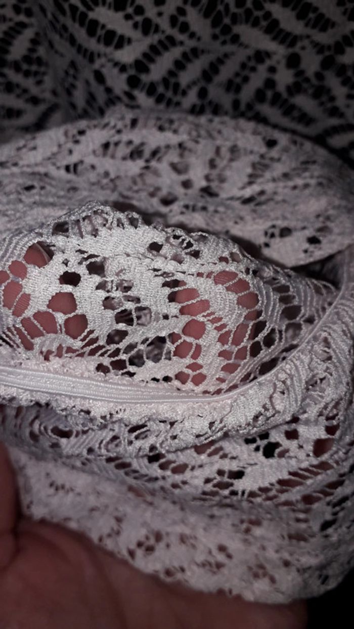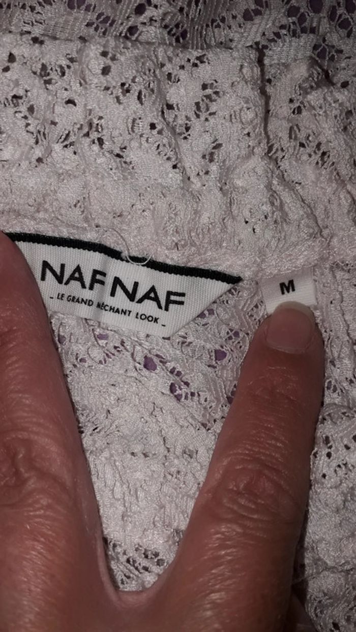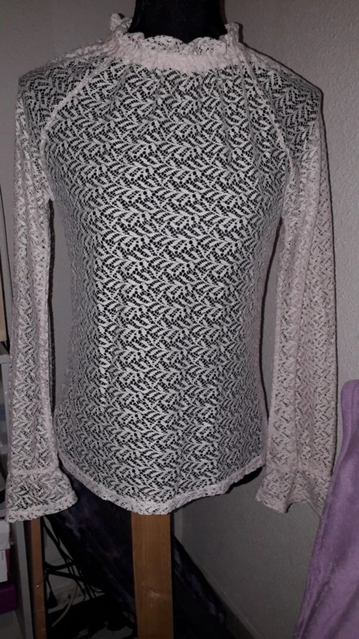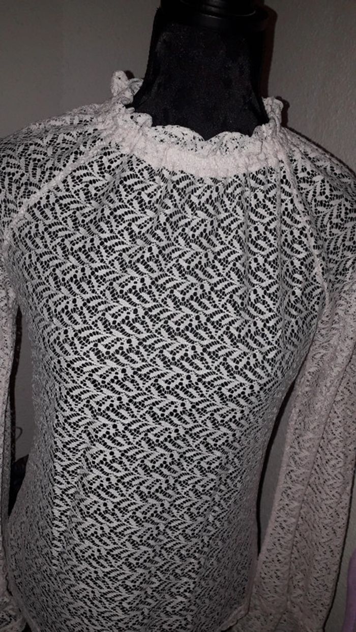 Tee-shirt écru en dentelles taille M de la marque Naf Naf, bas des manches avec élastiques (cf dernière photo).