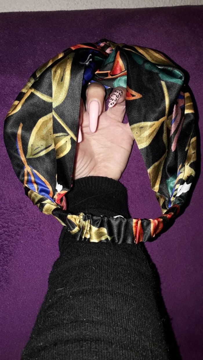 Magnifique bandeau pour les cheveux à dominante noire et multicolore, très doux style satin, élastique à l'arrière, de la marque Zara taille S/M. Neuf, jamais porté.