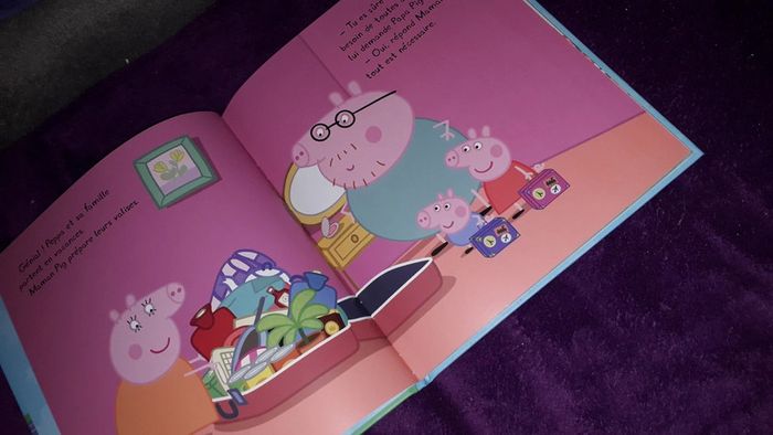 Livre broché pour enfants aux éditions Hachette Jeunesse - Peppa Pig - Peppa part en vacances. Seule la dernière page est légèrement cornée, peu visible (cf dernière photo).
