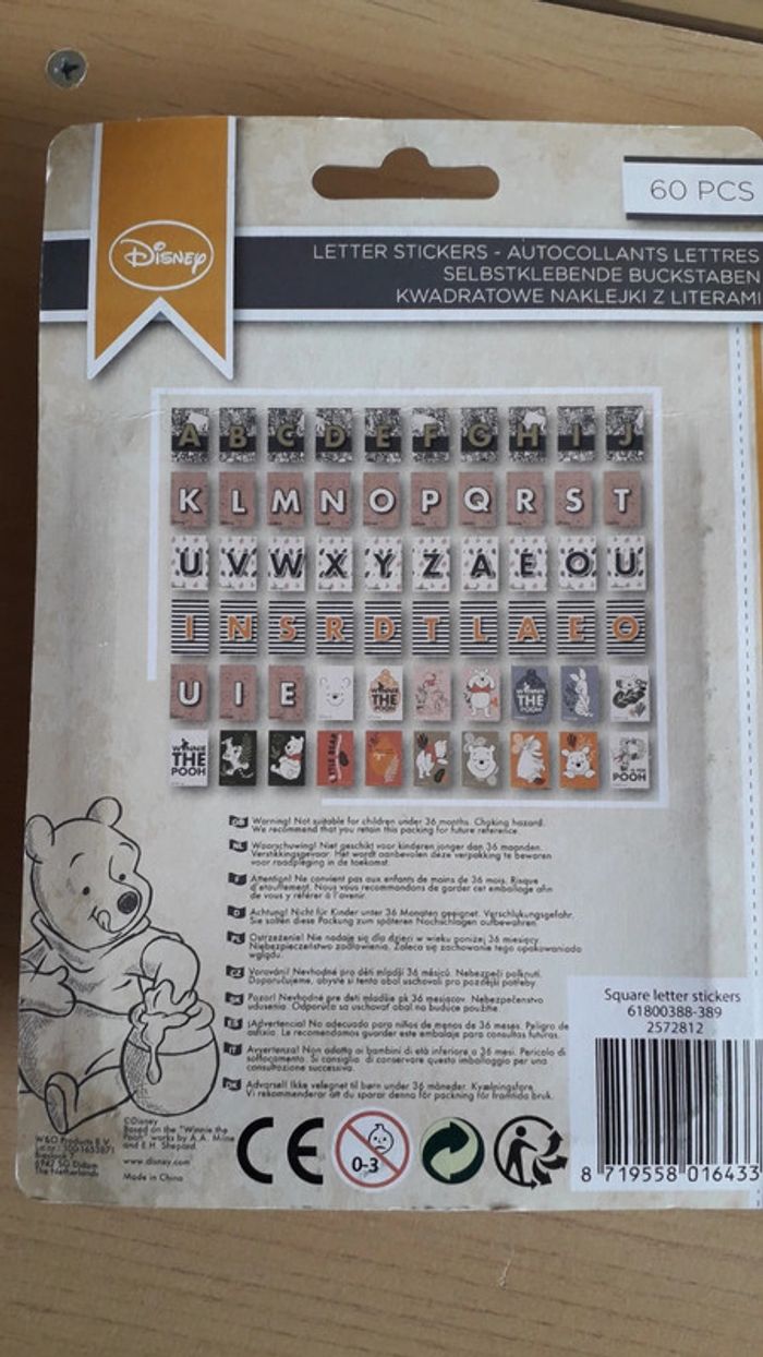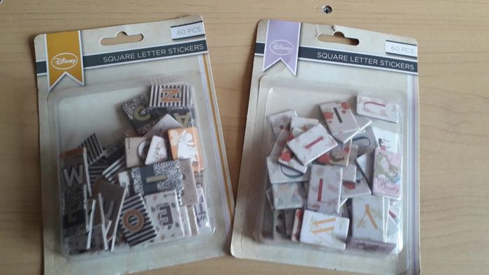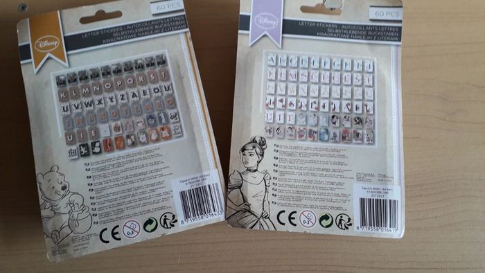 Lot de 2 paquets de lettres et figurines Disney. Chaque paquet contient 60 autocollants. Idéal pour les activités créatives avec les petits ou customiser un espace, meuble, cadre etc... NEUF jamais ouvert.