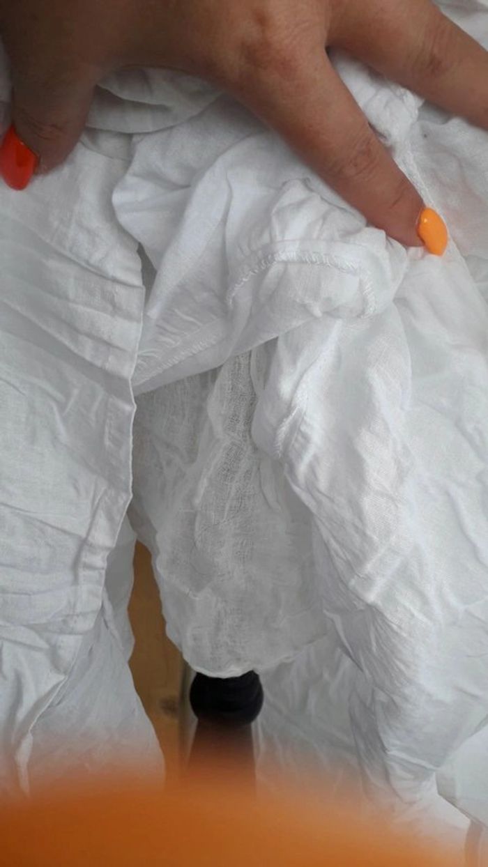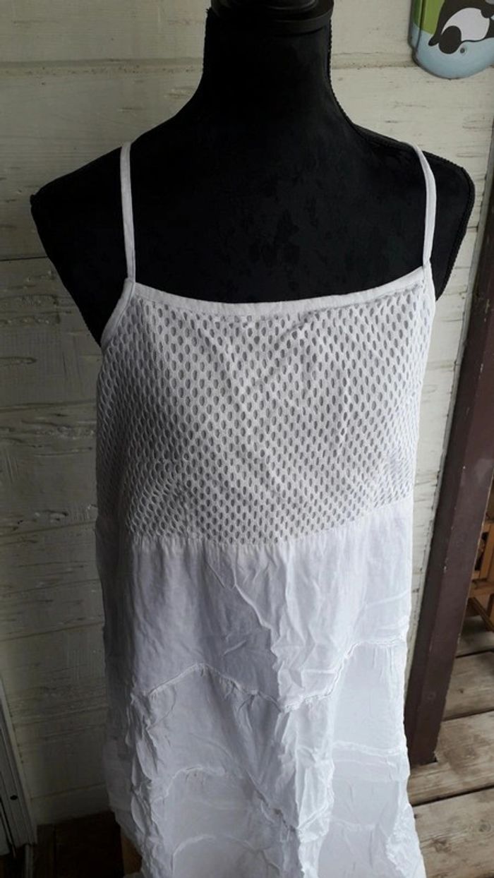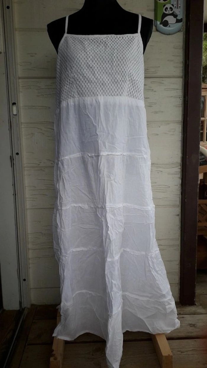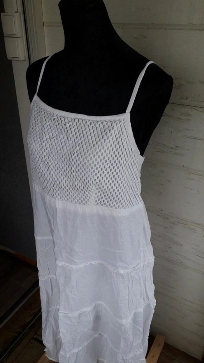 Robe longue blanche avec smoke taille 40 marque Benetton (étiquette coupée).