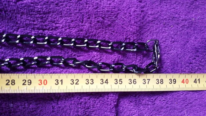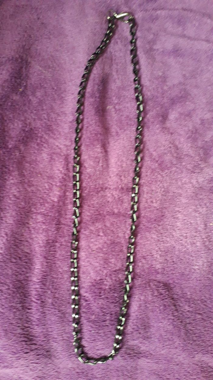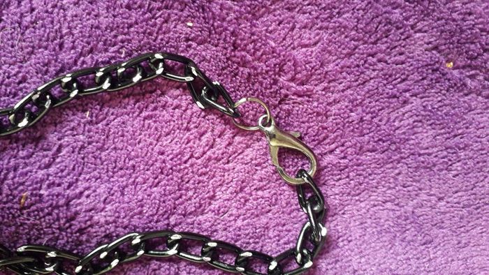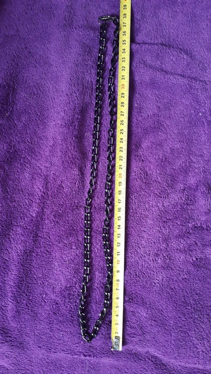 Collier noir à anneaux avec une accroche. Environ 38 cm.