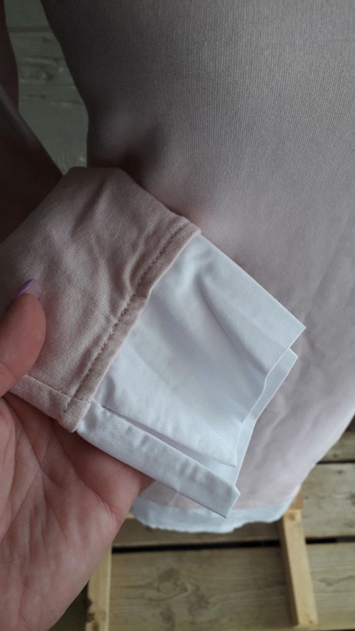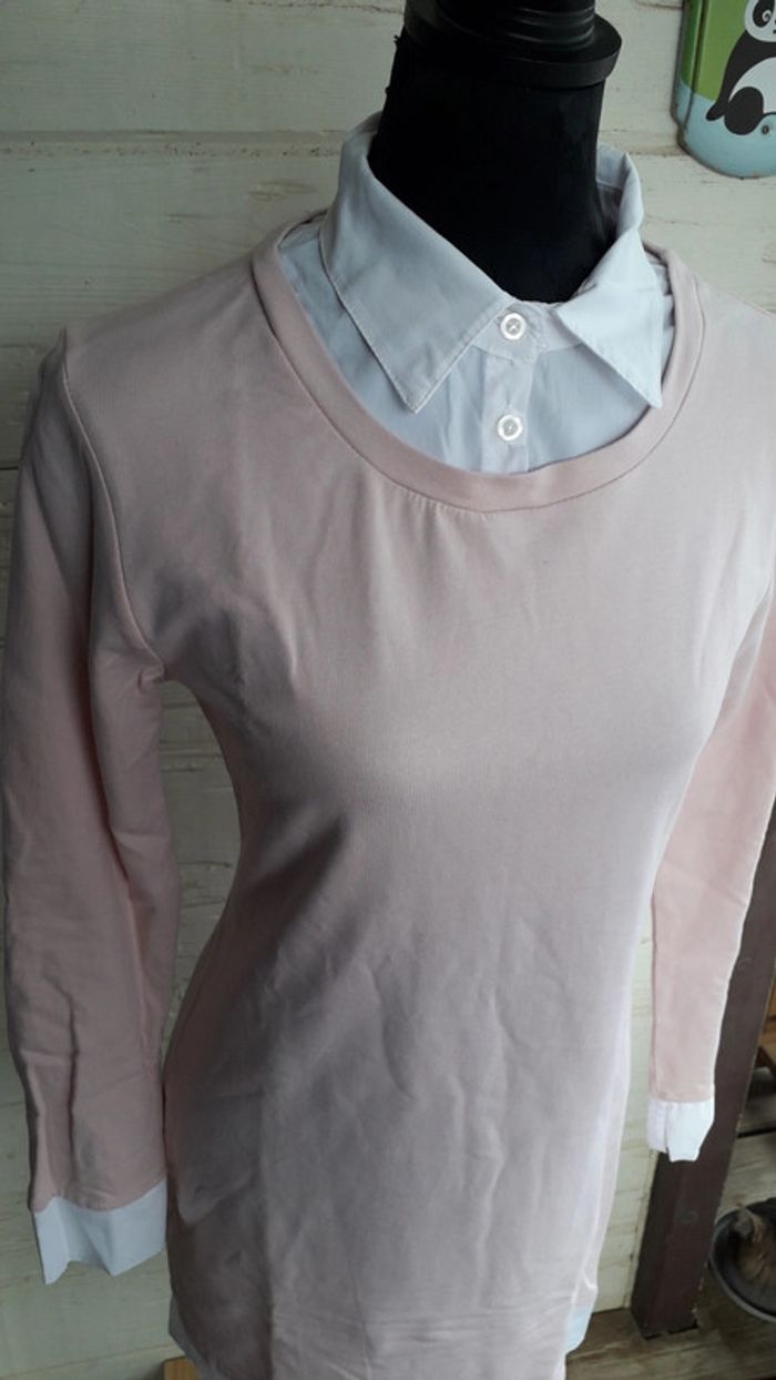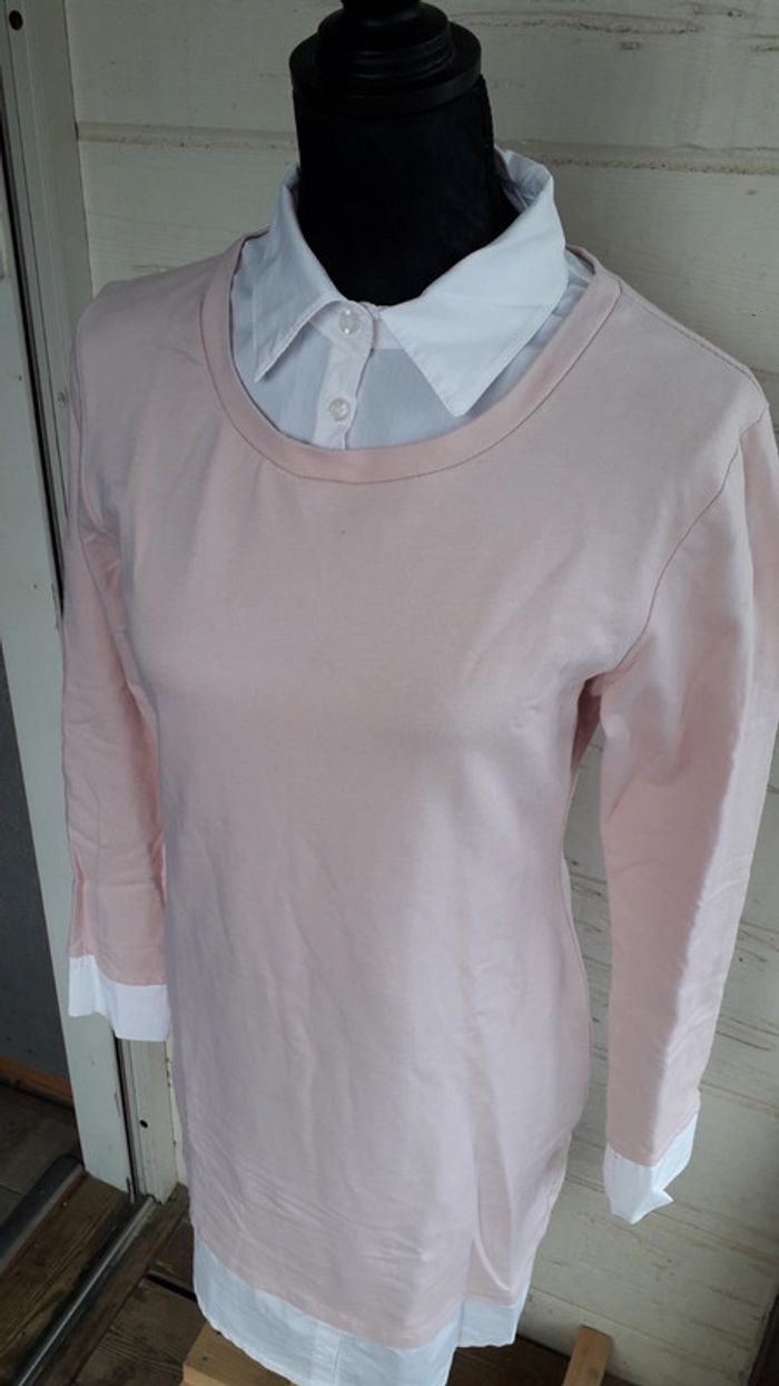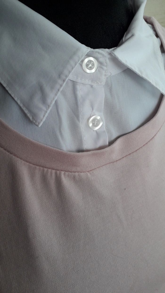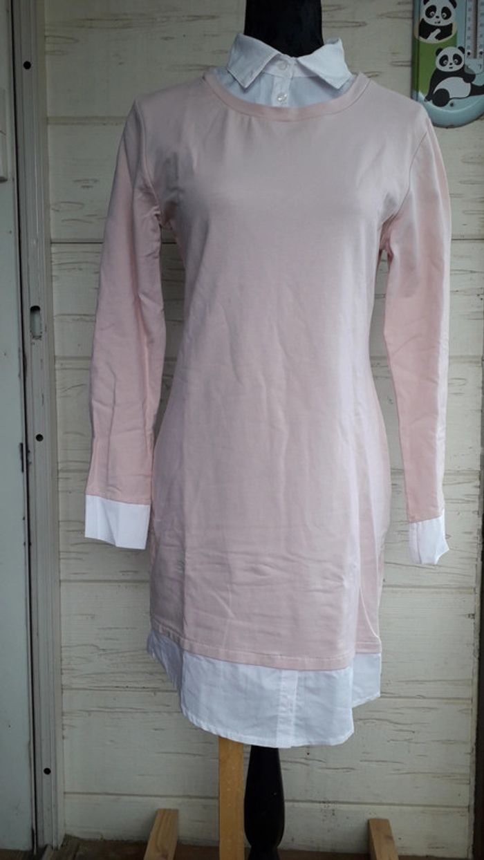 Robe chemisier bi-matière blanche et rose pâle taille 36/38.