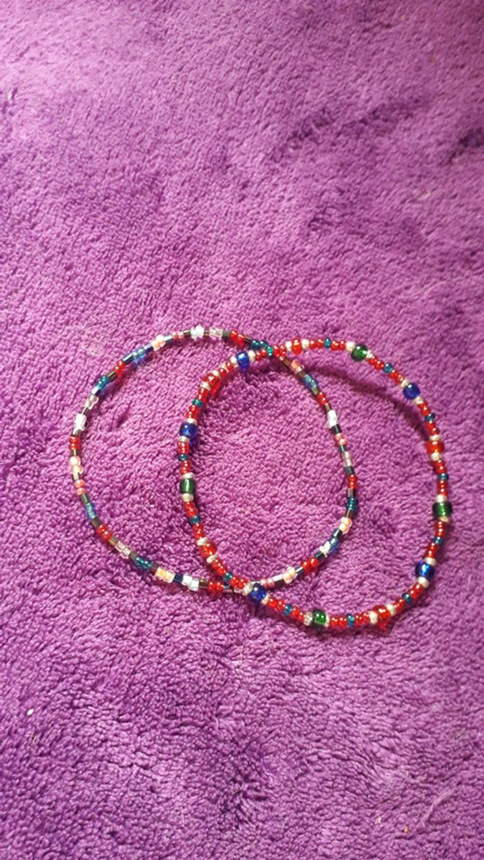 Lot de deux bracelets en perles. Non extensibles.